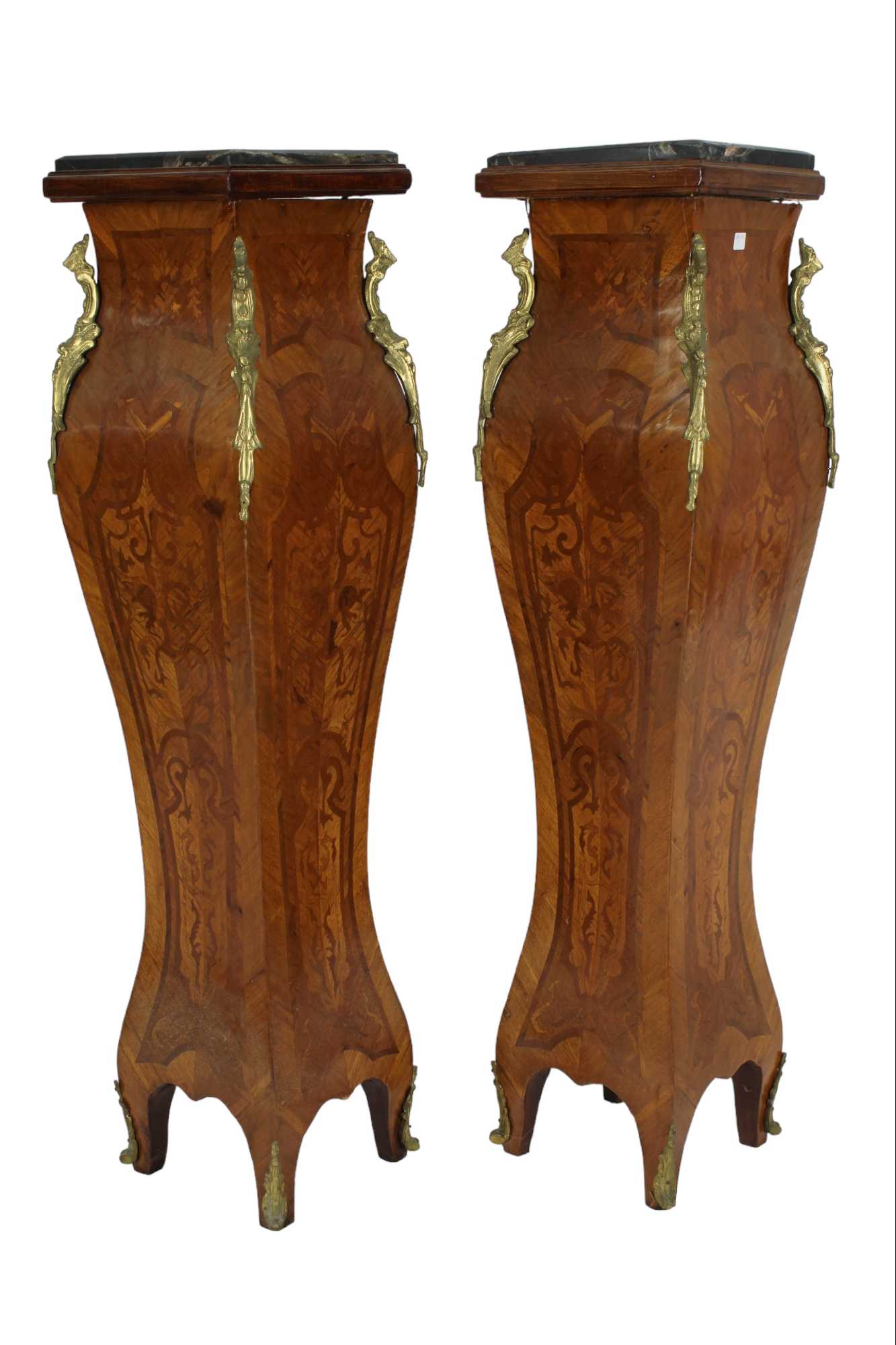 COPPIA CANTONI DI STILE FRANCESE in noce e tarsie di varie essenze vintage h cm 112 x 28 x 30