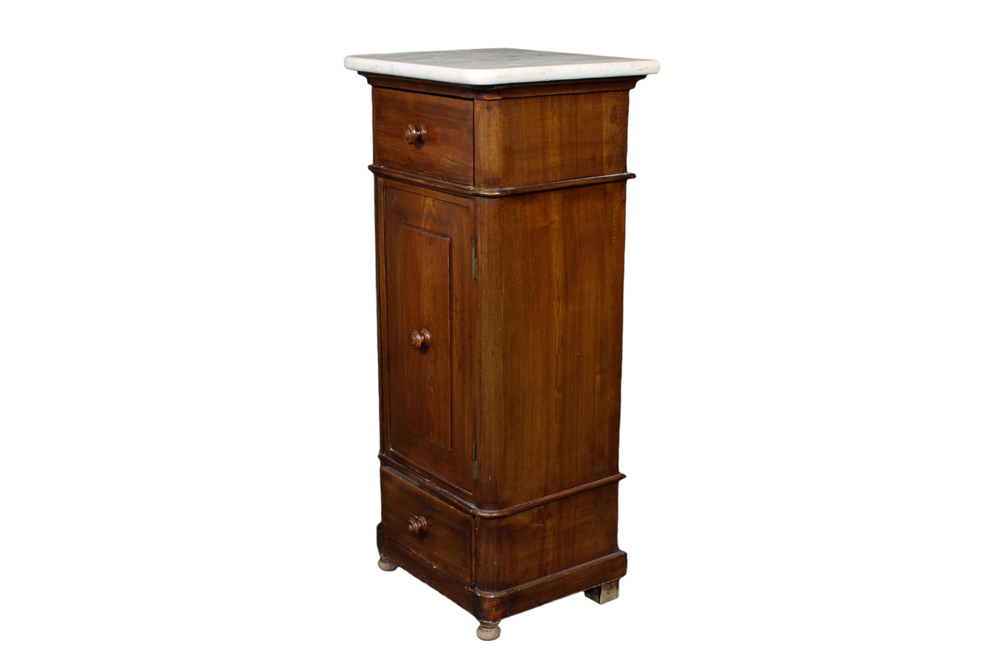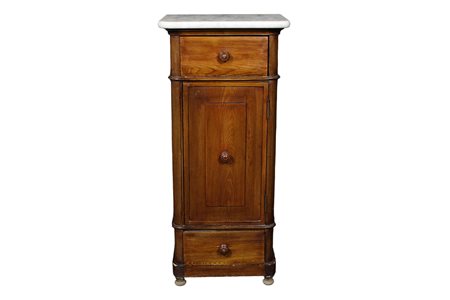 COMODINO in rovere con piano in marmo bianco di Carrara XIX secolo Sicilia h cm 94 x 42 x 35