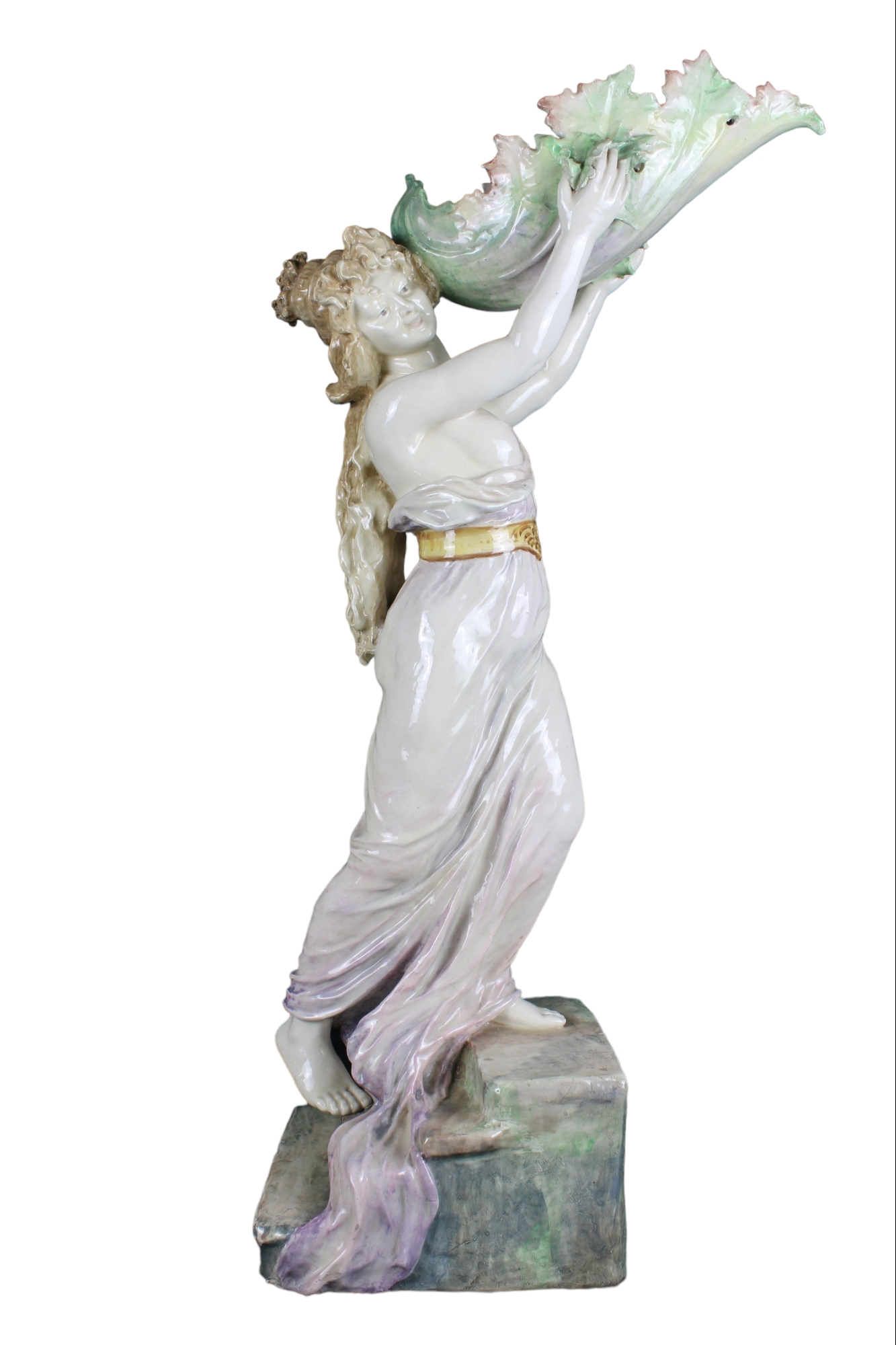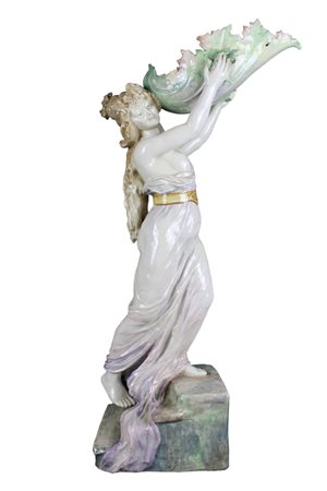 BELLA GRANDE SCULTURA in porcellana policroma raffigurante figura femminile manifattura francese fine XIX secolo h cm 87 x 45 x 21
