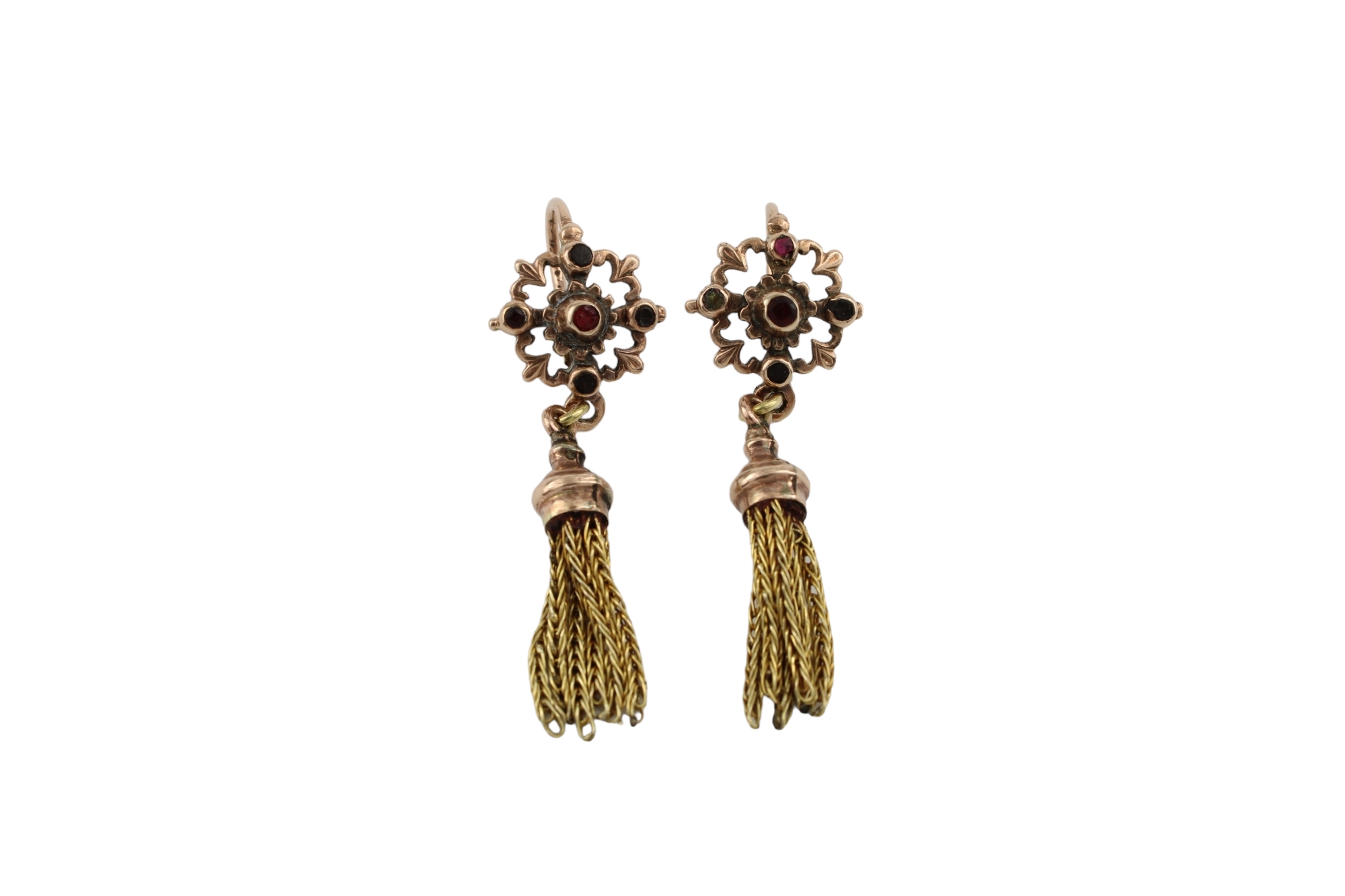 ORECCHINI SICILIANI con granati e fiocco del 700 di Piana grammi 8,6