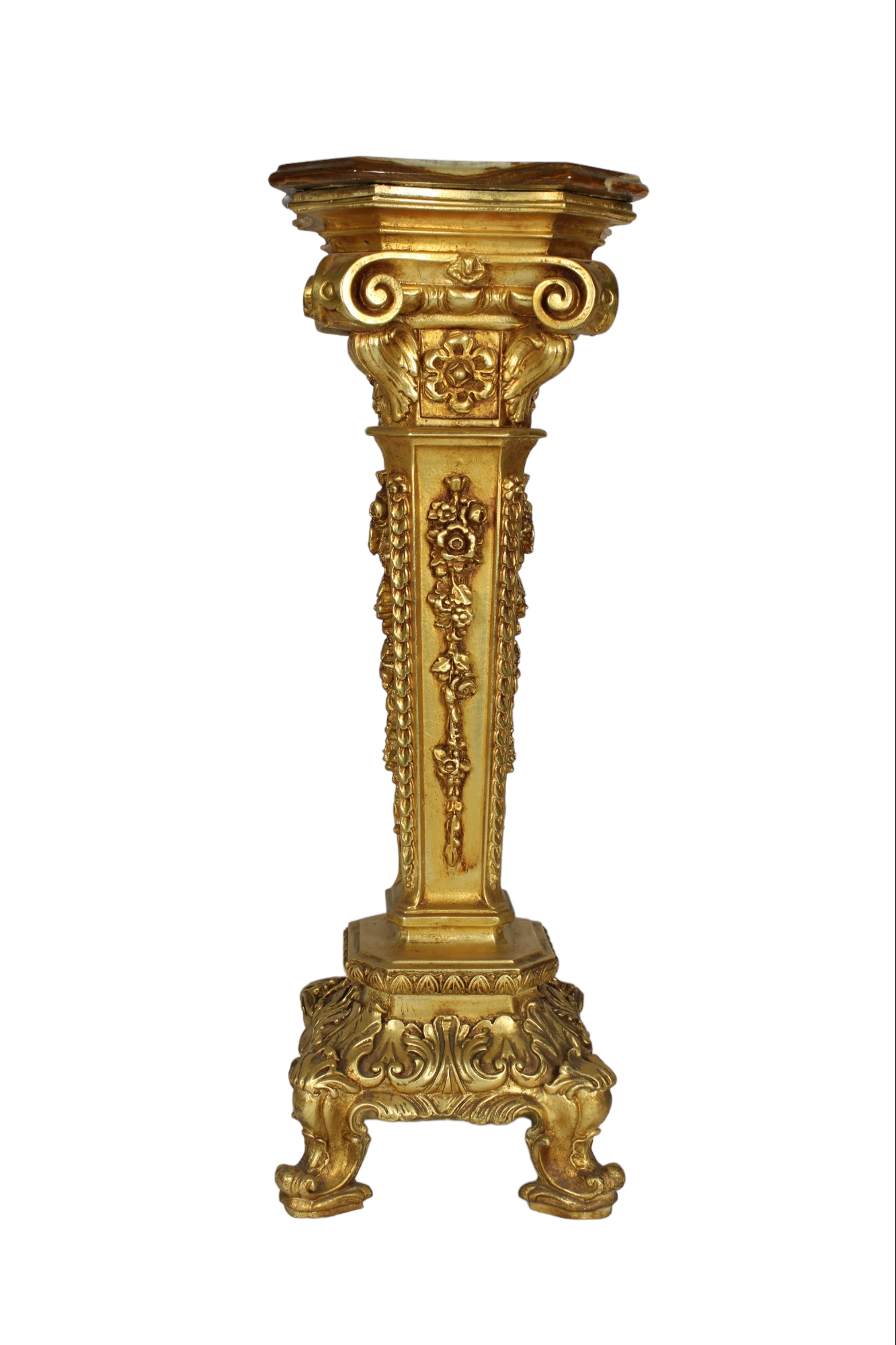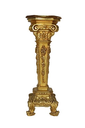 CANTONE STILE BAROCCO in legno dorato e decorato da soggetti floreali vintage Italiano h cm 98 x 34 x 34