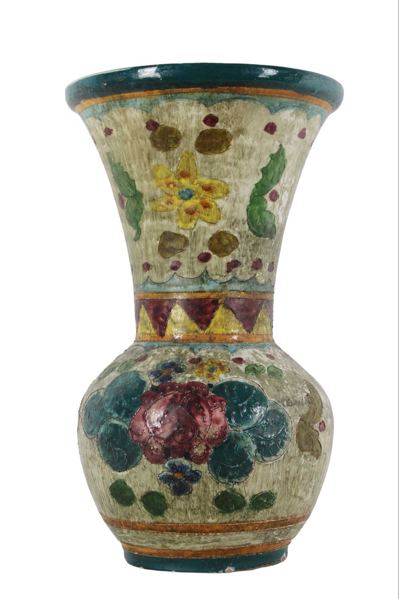 1 QUARTARA in terracotta grezza e 1 VASO decorato vecchia fattura Caltagirone h cm 35,5 x 21 / h cm 56,5 x 23