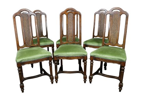 GRUPPO DI 6 SEDIE in noce vecchia fattura Italiana h cm 108 x 47 x 43
