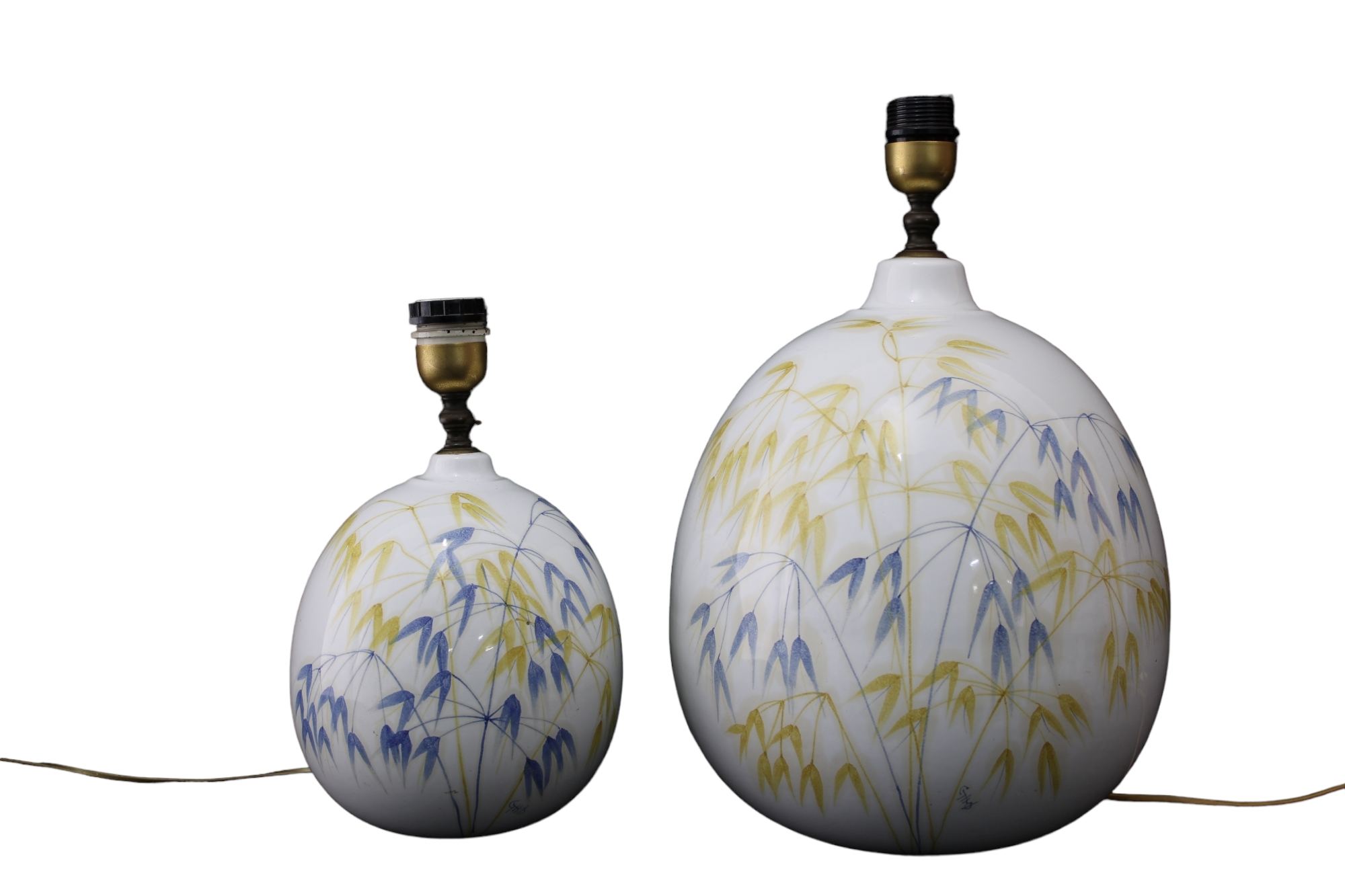 2 LUMI in vetro a pasta bianca decorato manifattura italiana XX secolo h cm 45 x 30 / h cm 30 x 20