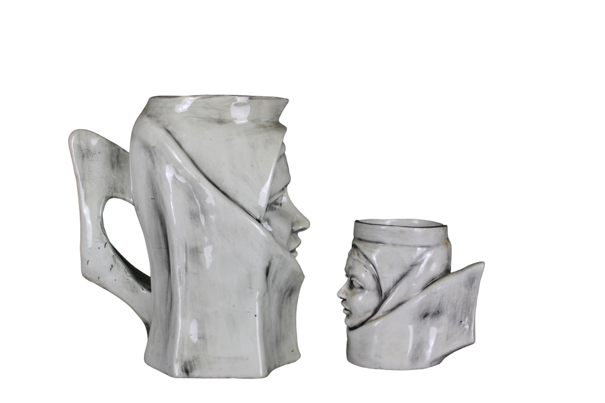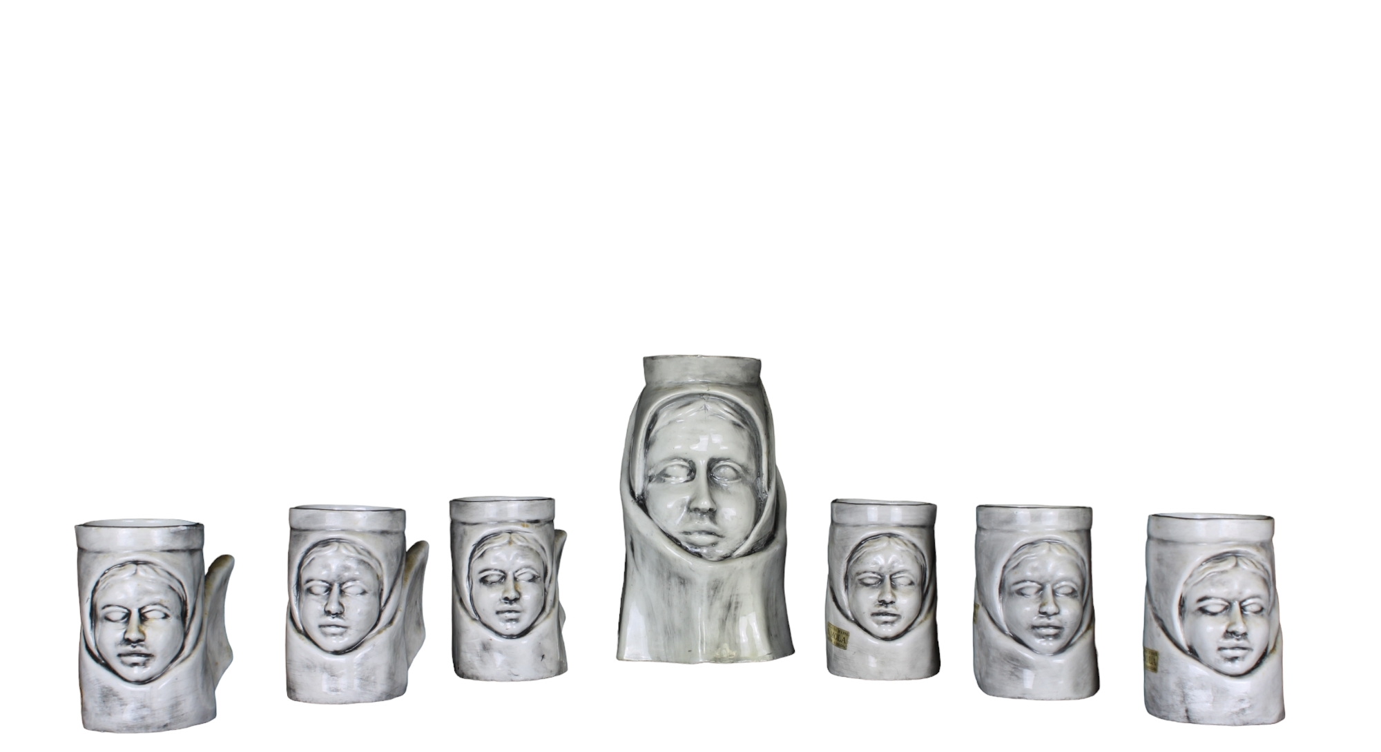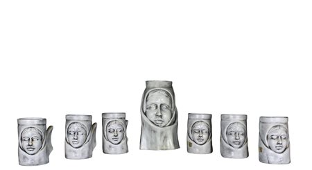 SERVIZIO IN CERAMICA COMPOSTO DA: 6 boccali e 1 caraffa marcato ceracle stelio vintage Cagliari h cm 20 x 10 x 10 / h cm 11 x 10 x 7