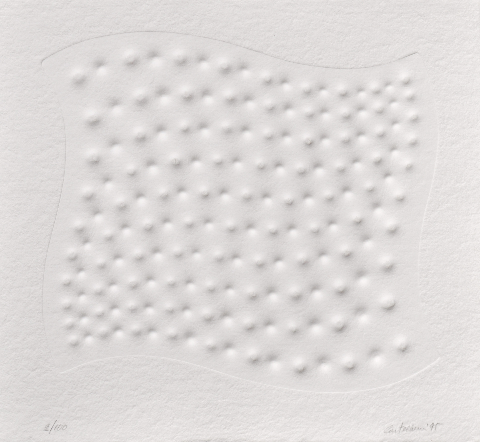 Enrico Castellani (Castelmassa 1930 - Celleno 2017) Superficie II, 1995;Impressione a secco su carta Sicars Aci