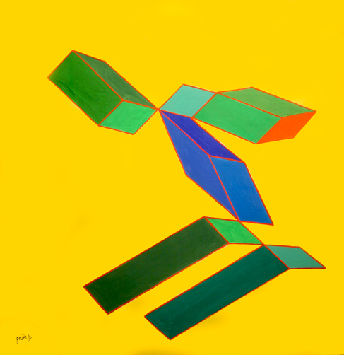 PERILLI Achille (Roma 1927) Il fenomeno plurale, 1990 olio su tela cm. 50 x 50 Firma, data 'Perilli, 90' (in basso a sinistra) Firma, data, titolo, misure 'Achille Perilli, 1990, Il fenomeno plurale, 50x50' (al retro) Autentica dell'artista su fotografia, con timbro della Galleria Pace, Milano