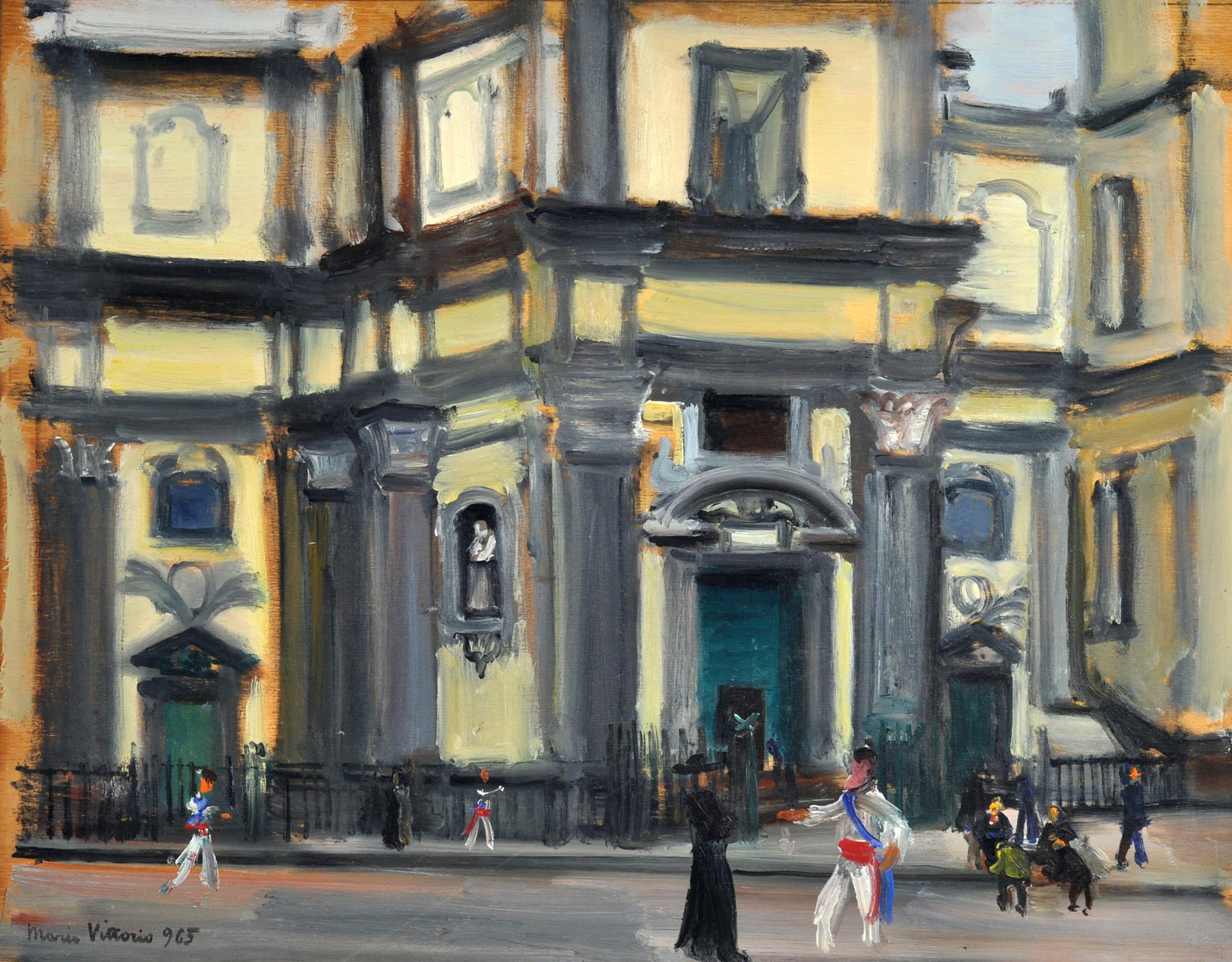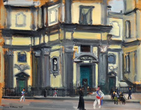 Vittorio Mario (Napoli 1908 - 1975) San Vincenzo alla Sanità olio su tavola cm 35x45 firmato e datato in basso a sinistra: Mario Vittorio 965 a tergo datato e iscritto