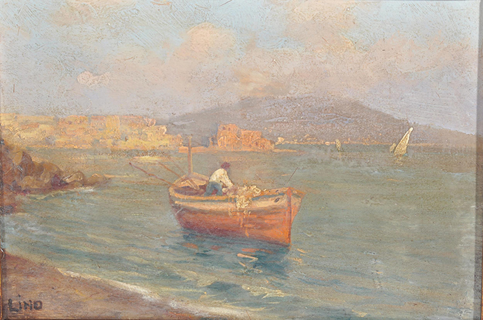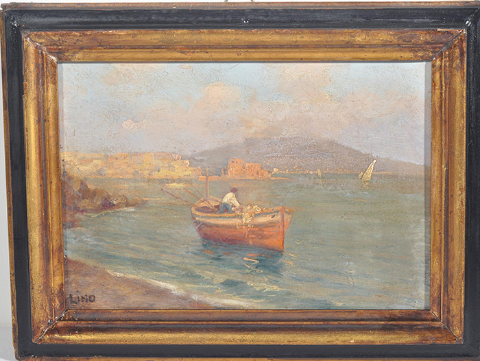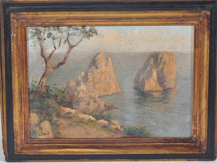 Lino Gustave (Francia1893 - 1961) a) Faraglioni di Capri b) Golfo di Napoli olio su tavola, cm 14x20 firmati in basso a sinistra: Lino