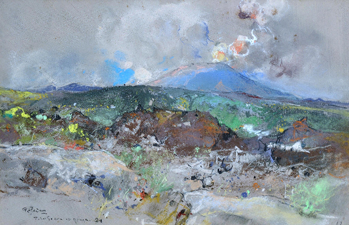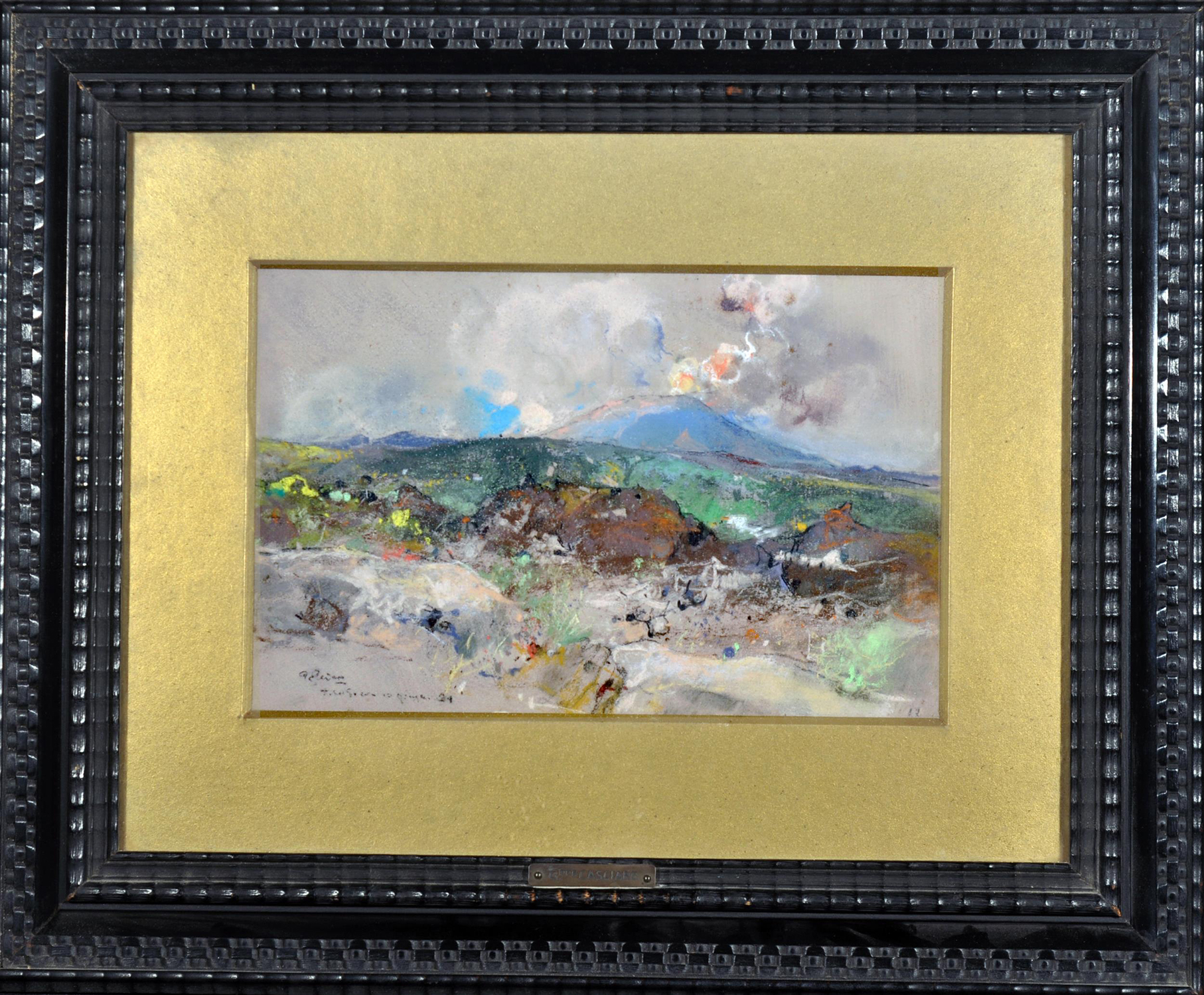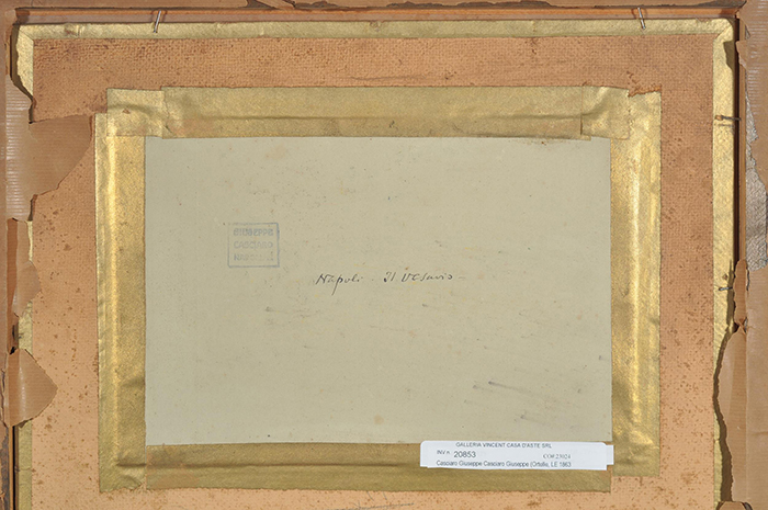 Casciaro Giuseppe (Ortelle, LE 1863 - Napoli 1941) Napoli dal Vesuvio pastelli su carta, cm 18,5x28 firmato e iscritto in basso a sinistra: G. Casciaro