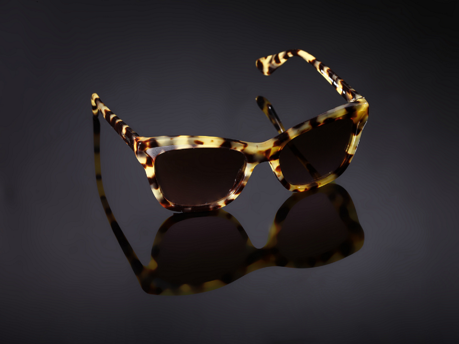 Occhiali da sole a motivo tartaruga nelle sfumature del marrone. Modello 750-5P1. Completi di custodia, scatola e panno.