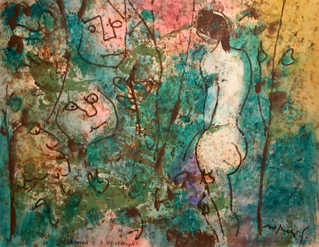ROGNONI Franco (Milano 1913 - Milano 1999) Susanna e i vecchioni tecnica mista su tavola cm. 34 x 41 Titolo 'Susanna e i vecchioni' (in basso a sinistra); firma 'Rognoni F' (in basso a destra) Firma 'Rognoni F, opera mia, Franco Rognoni' (al retro) Autentica dell'artista su fotografia