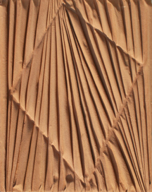 MARIANI Umberto (Milano 1936) La forma celata, 2009 vinilico e sabbia su lamina di piombo cm. 42 x 33 Firma, data, titolo, misure 'U. Mariani, 11/2009, La forma celata, cm. 42x33' (al retro) Autentica dell'artista su fotografia Bibliografia: F. Sardella, 'Umberto Mariani - Realtà velate: l'enigma nella piega', ed. Armanda Gori Arte, 2010, p.21