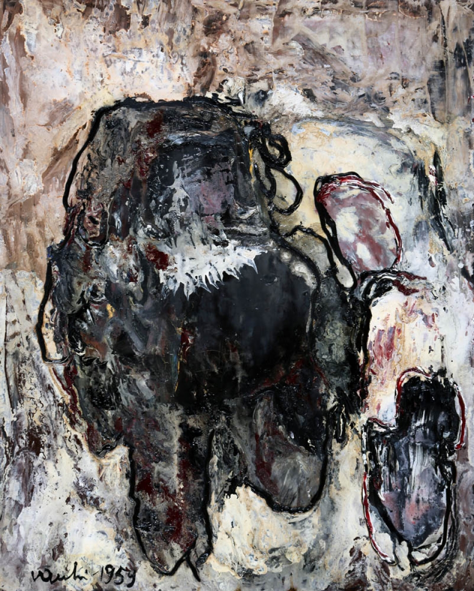 SERGIO VACCHI 1925 " Piccolo racconto n. 13 ", 1959 Olio su tela, cm. 80 x 65 Firmato e datato in basso a sinistra Autentica dell'artista su fotografia Prov. Collezione Privata