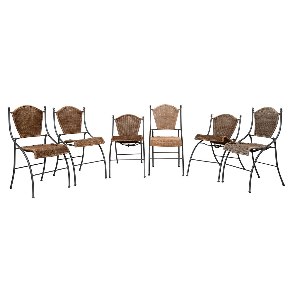 DODICI SEDIE da giardino richiudibili con struttura in ferro, seduta e spalliera in rattan.