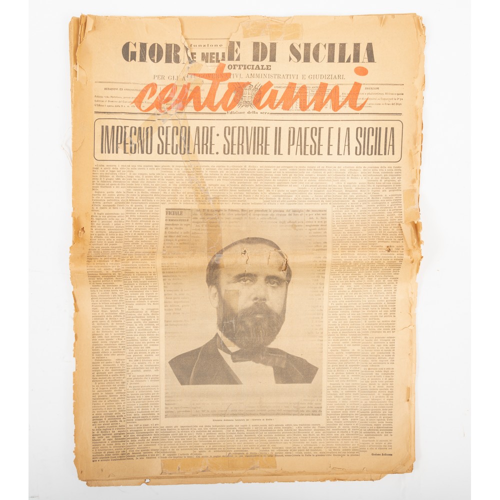 GIORNALE DI SICILIA CENTO ANNI, edizione per il centenario del Giornale di Sicilia 1860 – 1960. Pagine usurate e slegate, con una piccola perdita alla prima pagina, ma tutte presenti.