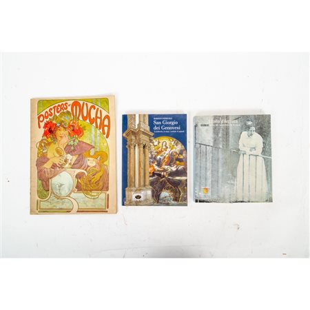 TRE PUBBLICAZIONI D’ARTE: 1) AA. VV. POSTERS OF MUCHA, ed. Harmony Books New York 1975. Formato in folio. Brossura editoriale illustrata. L’opera si compone di 22 poster a colori dell’artista Alphonse Mucha. In ottime condizioni. 2) Maria Francesca Bonetti / Monica Maffioli – a cura di - L’ITALIA D’ARGENTO. 1839 – 1859 STORIA DEL DAGHERROTIPO IN ITALIA, ed. Alinari 2004. Catalogo della mostra tenutasi a Palazzo Branciforte dal 7 Maggio al 13 Giugno 2004. Cm 27,5 x 24. Brossura editoriale cartonata illustrata con ali. Pp. 276. 3) Roberto Patricolo SAN GIORGIO DEI GENOVESI. LA FABRICA, LE STIRPI, I SIMBOLI, LE EPIGRAFI, ed. Centro S. Mamiliano, 2006. Brossura editoriale cartonata illustrata con ali. Cm 30 x 21. Pp. 215. Raro a trovarsi.