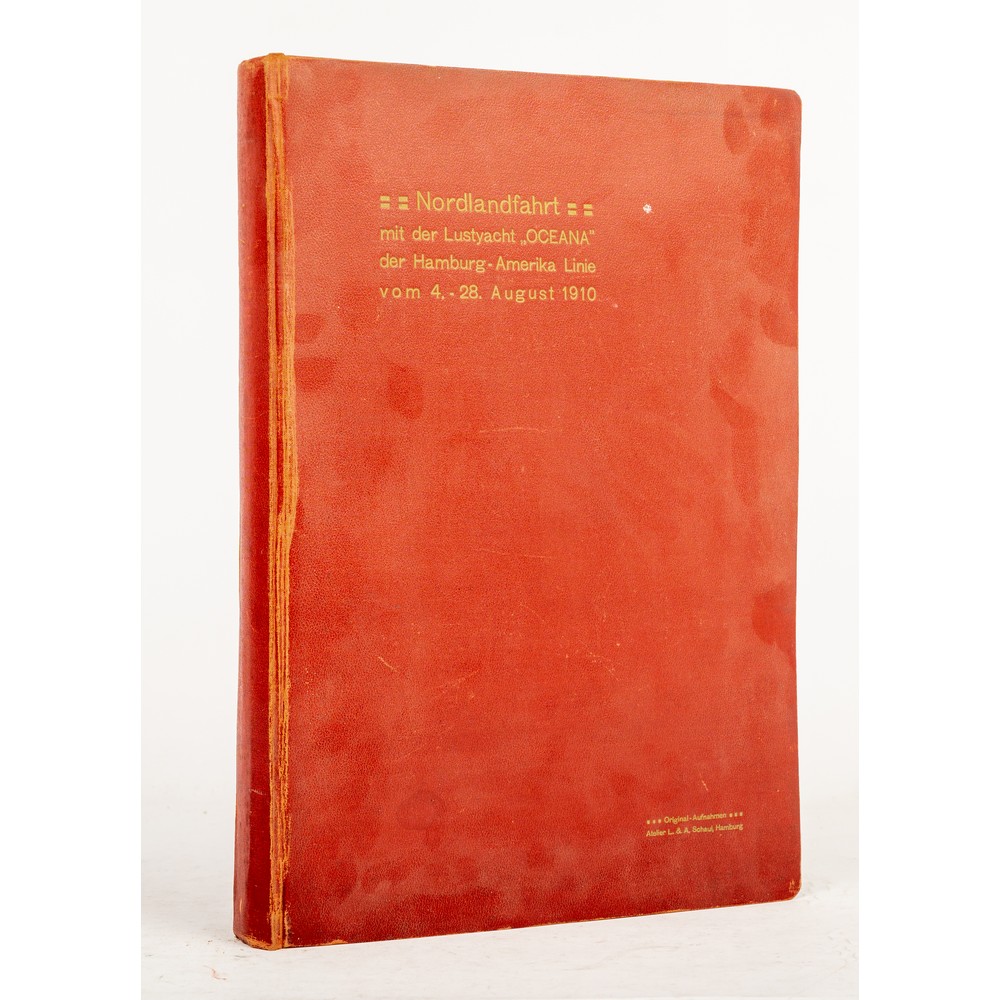 GRANDE ALBUM FOTOGRAFICO DEL 1910 relativo a un viaggio nei Paesi del Nord a bordo dello Yacht da diporto “Oceana”, sulla linea Hamburg – America tenutosi dal 4 al 28 Agosto 1910. L’album contiene 109 fotografie originali del viaggio.