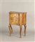 Piccola commode in noce e radica filettata in legno di bosso, piano sagomato...