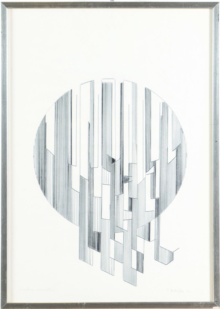 Diana Baylon (Bevagna 1920 - Firenze 2013)), “Progetto per una poltrona”, 1972. China su carta, firmato e datato in basso a destra “D. Baylon 72”, reca titolo in basso a sinistra, H cm 48x68