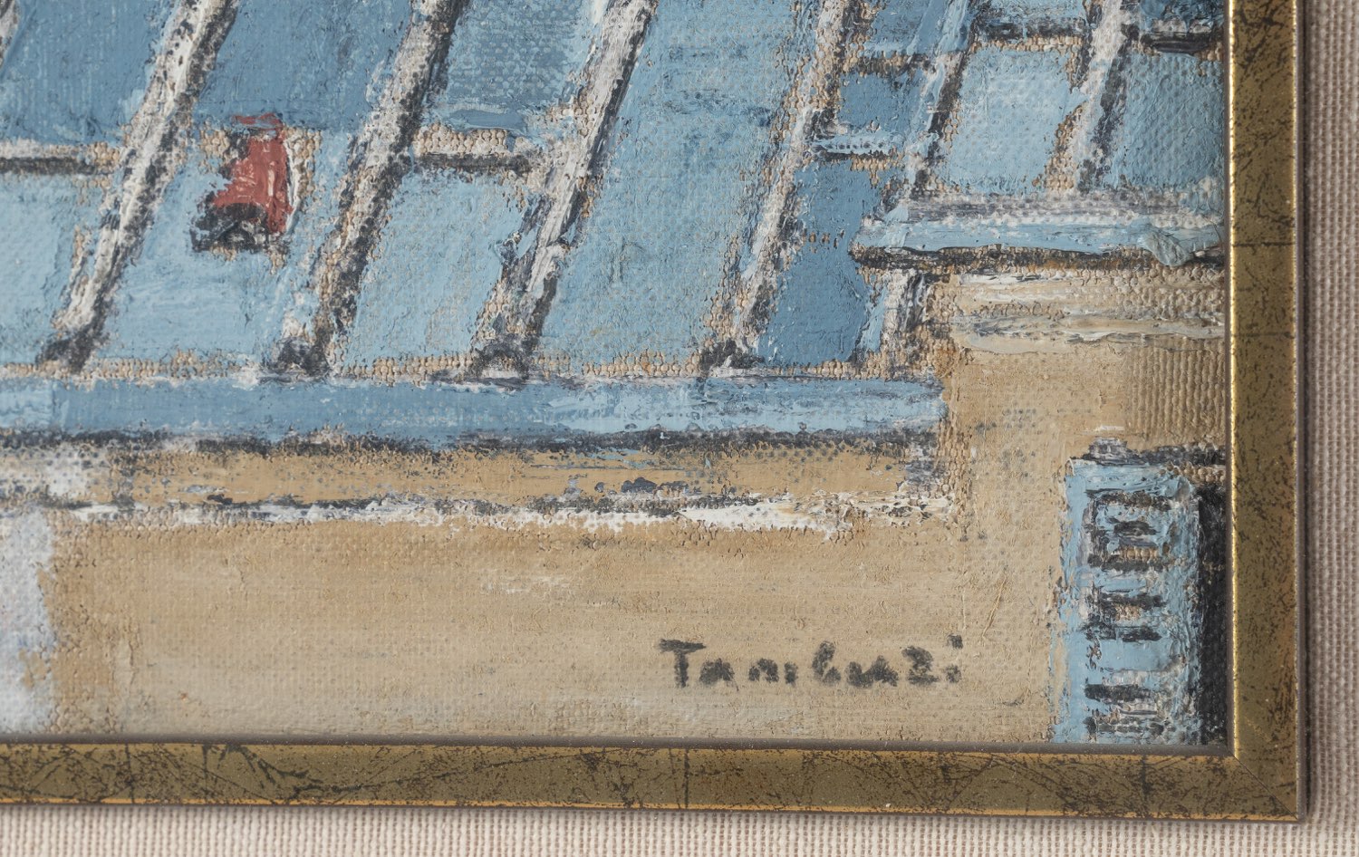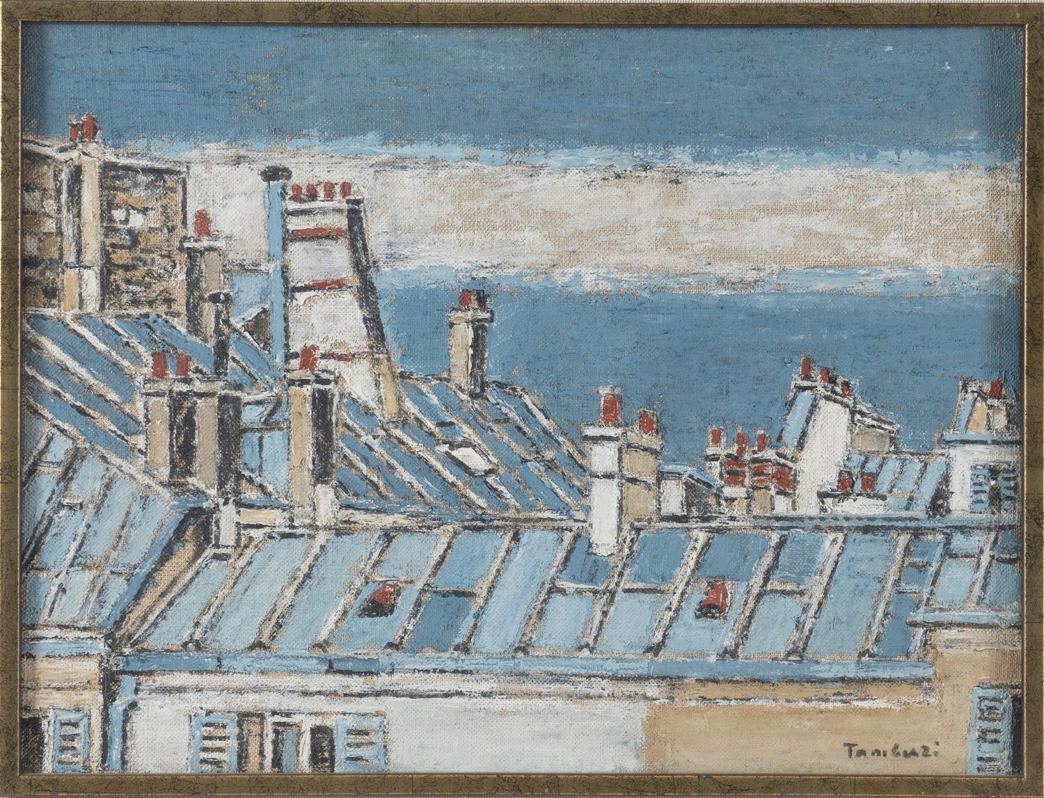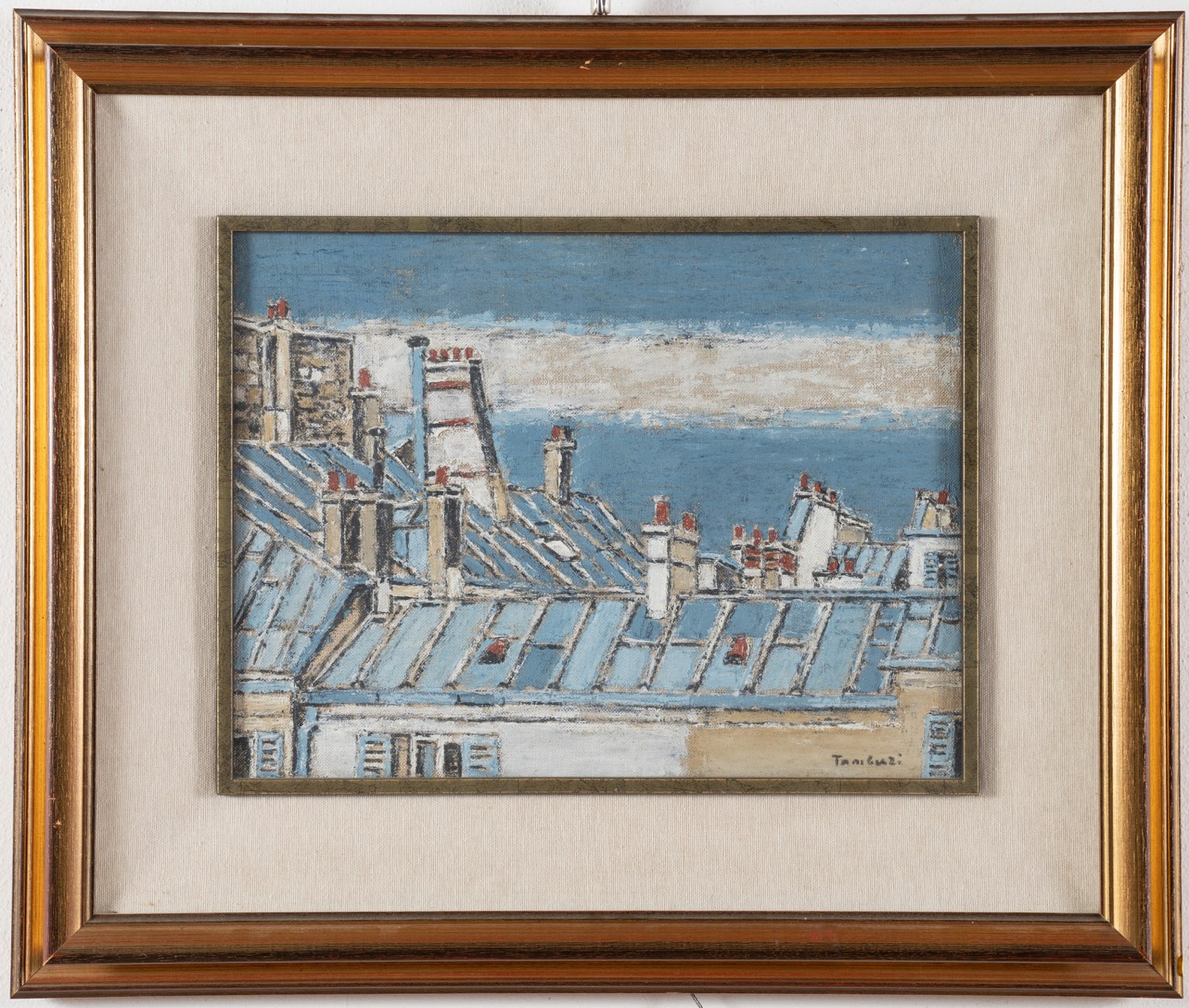 Orfeo Tamburi (Jesi 1910 - Parigi 1994), “Tetti di Parigi”. Olio su tela, firmato in basso a destra, reca al retro etichetta La Casa dell’Arte - Sasso Marconi con numero di inventario 5839, H cm 30x40