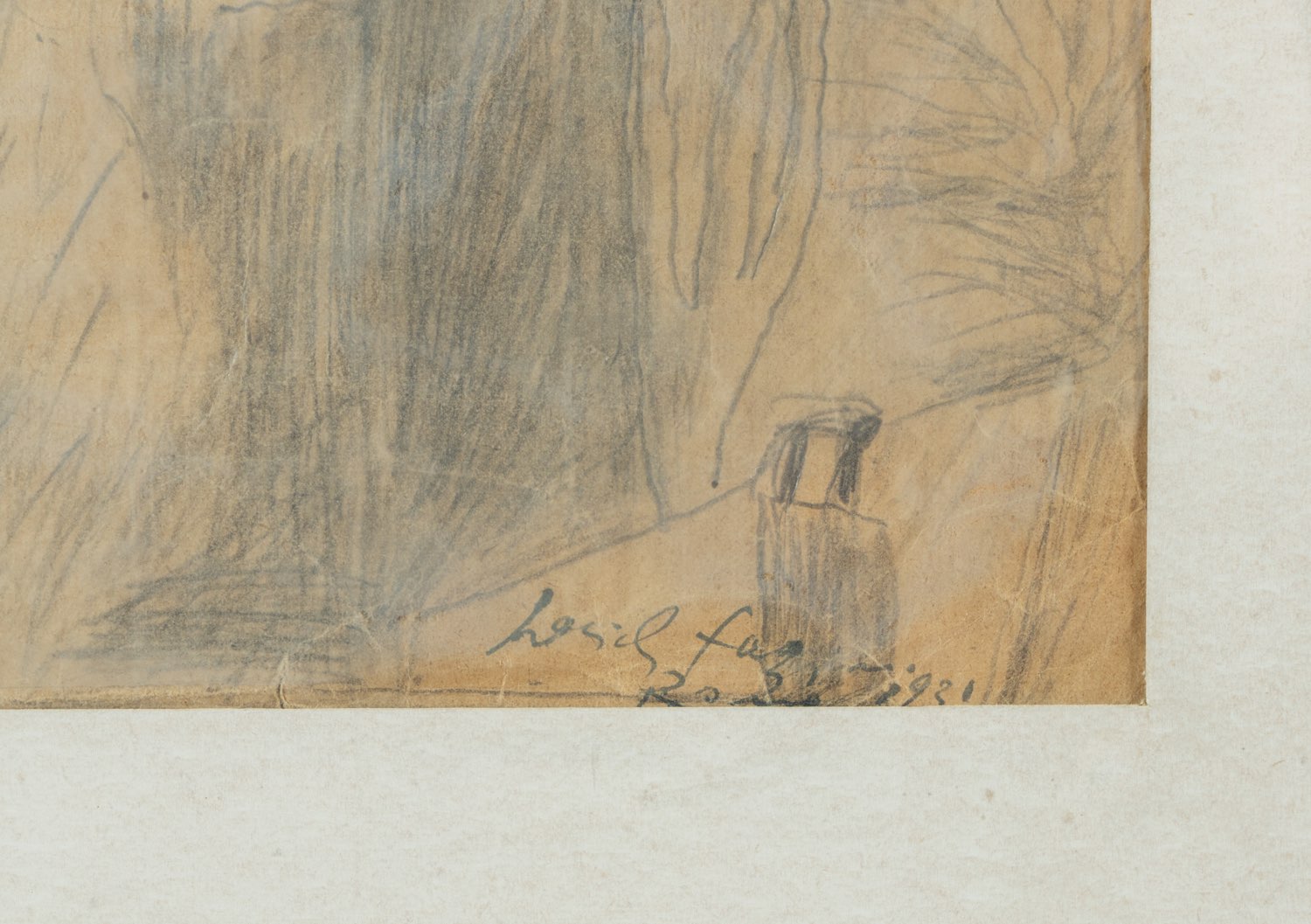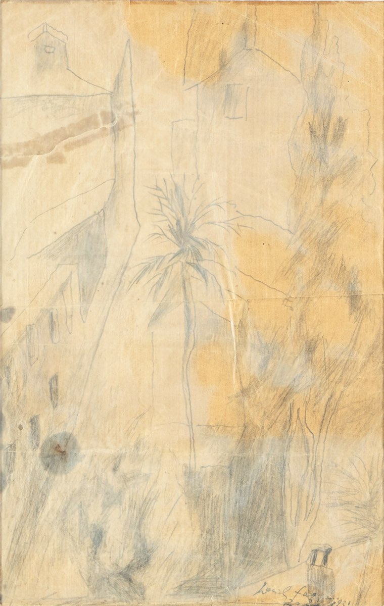 Pericle Fazzini (Grottammare 1913 - Roma 1987), “Senza titolo”, 1932. Disegno a matita su carta, presenta in basso a destra firma, luogo e data “pericle azzini/Roma 1931”, H cm 37x24 (difetti)