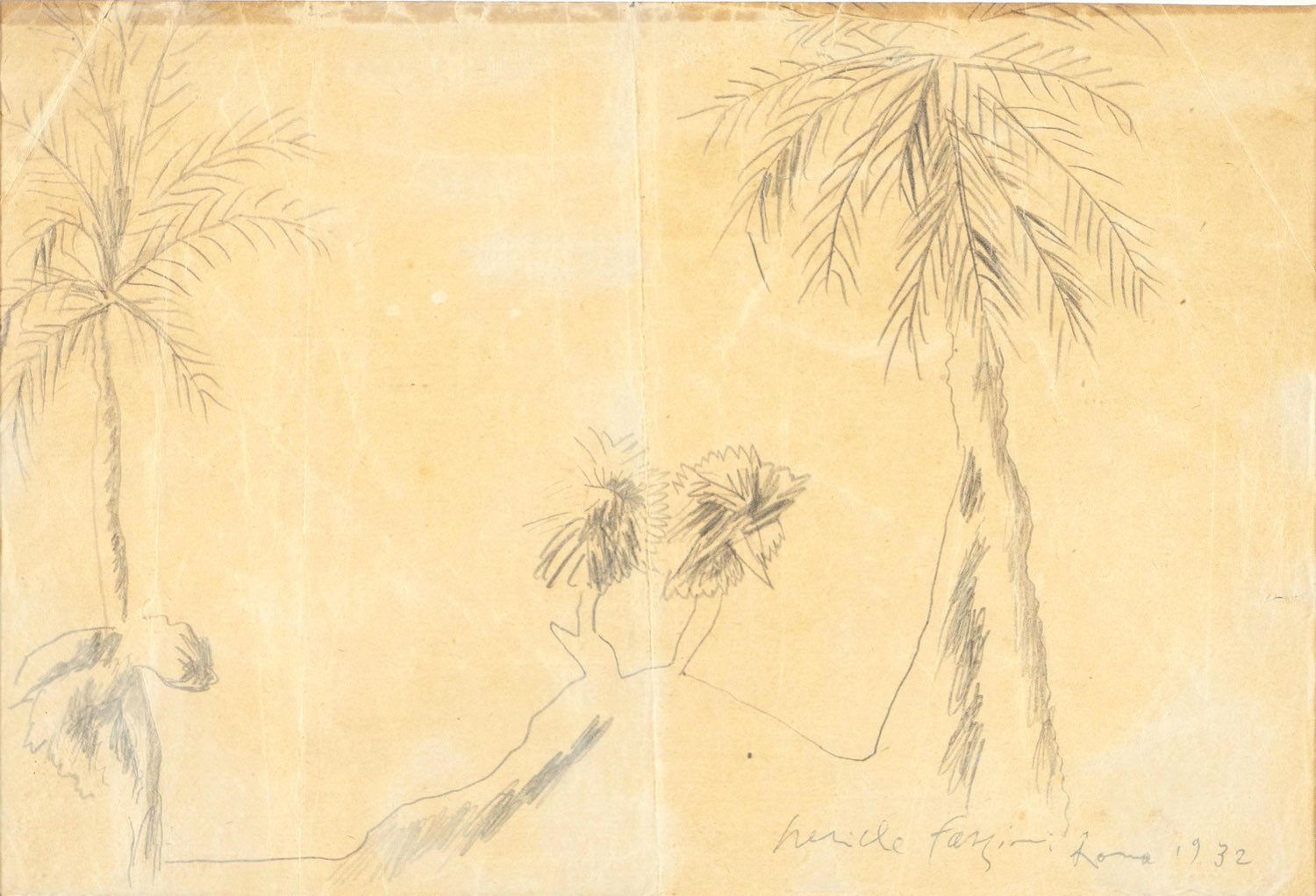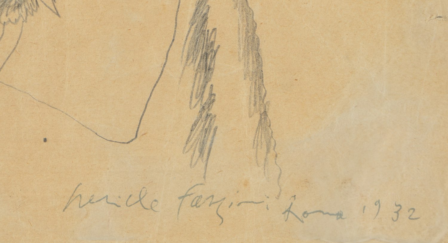 Pericle Fazzini (Grottammare 1913 - Roma 1987), “Senza titolo”, 1932. Disegno a matita su carta, presenta in basso a destra firma, luogo e data “pericle fazzini Roma 1932”, H cm 24.5x35.5 (difetti)