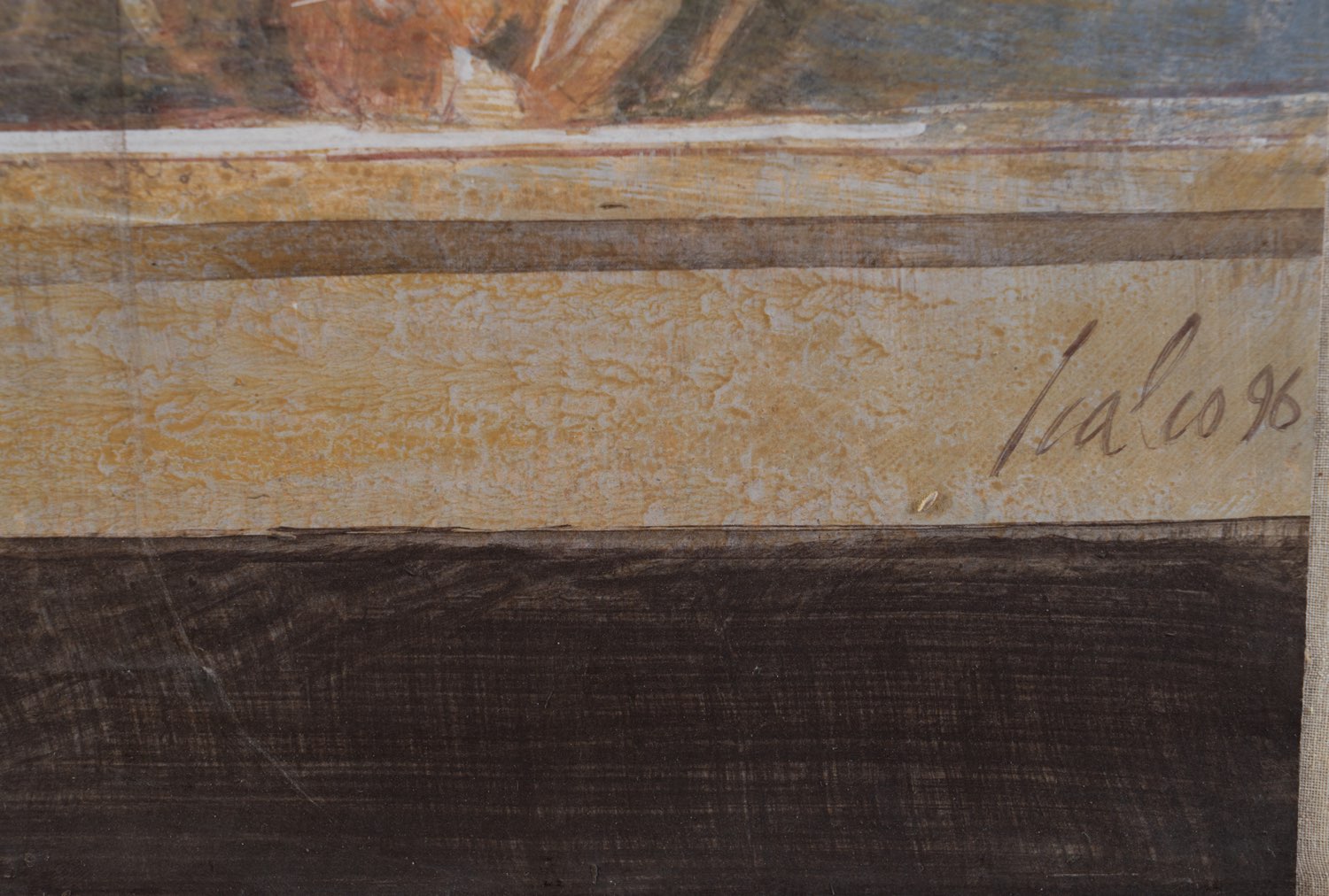 Giorgio Scalco (Schio 1929), “Senza titolo”, 1996. Tempera su carta applicata a tela, firmato e datato in basso a destra “Scalco 96”, H cm 116x76