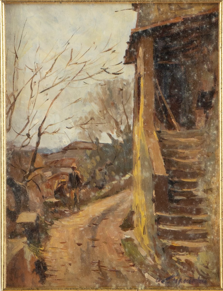 Osvaldo Curandai (Firenze 1931 - Rignano 2019), “L’attesa”, 1969. Olio su tavola di noce, firmato in basso a destra, reca al retro etichetta e timbri della Galleria d’Arte Bongiovanni - Bologna, H cm 23x18