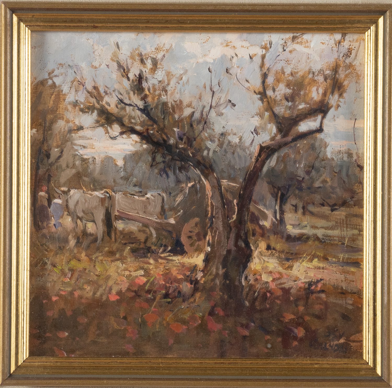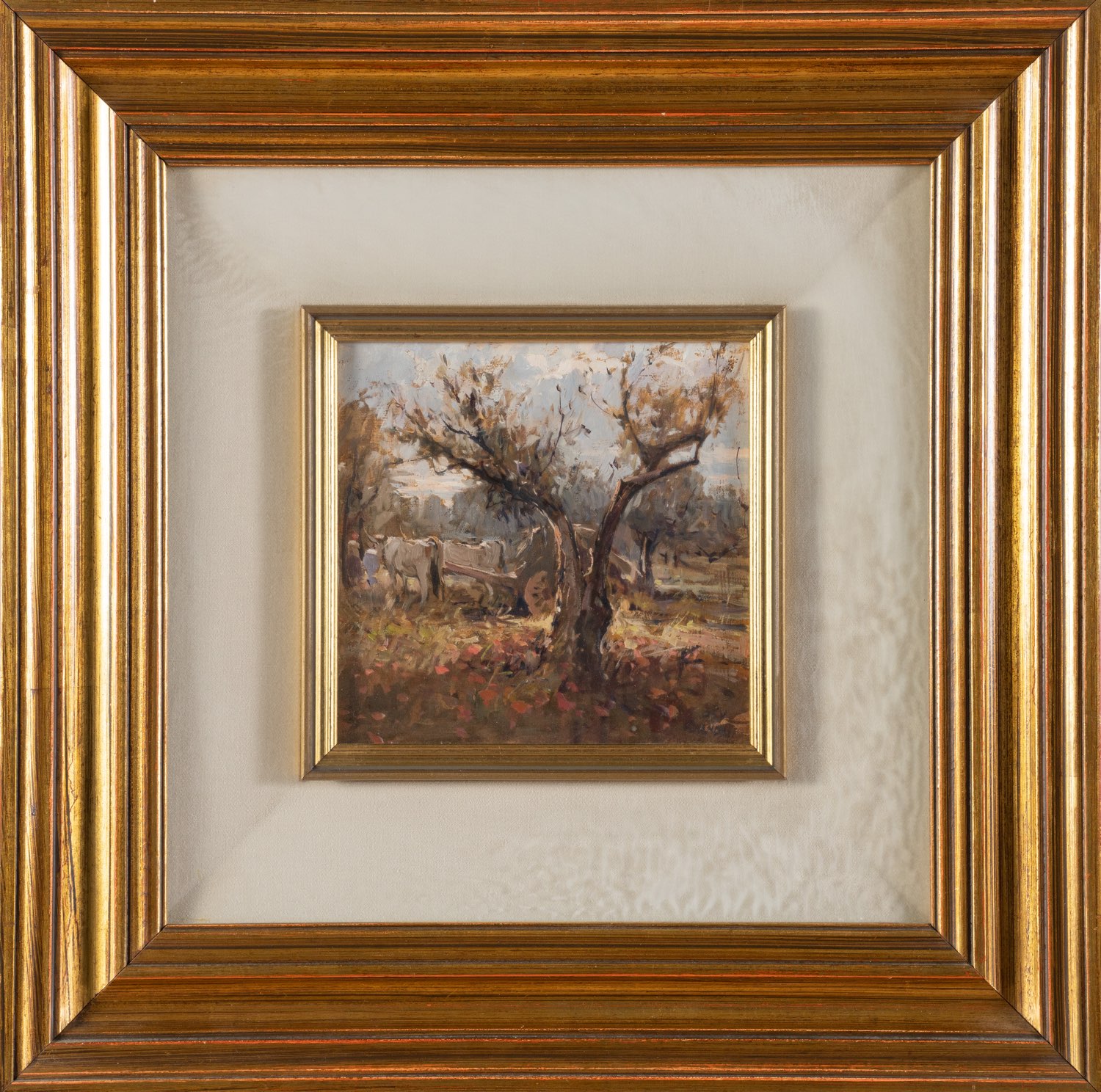 Osvaldo Curandai (Firenze 1931 - Rignano 2019), “Senza titolo”, 1981. Olio su tavola, firmato in basso a sinistra, reca al retro firma e data, H cm 19x19