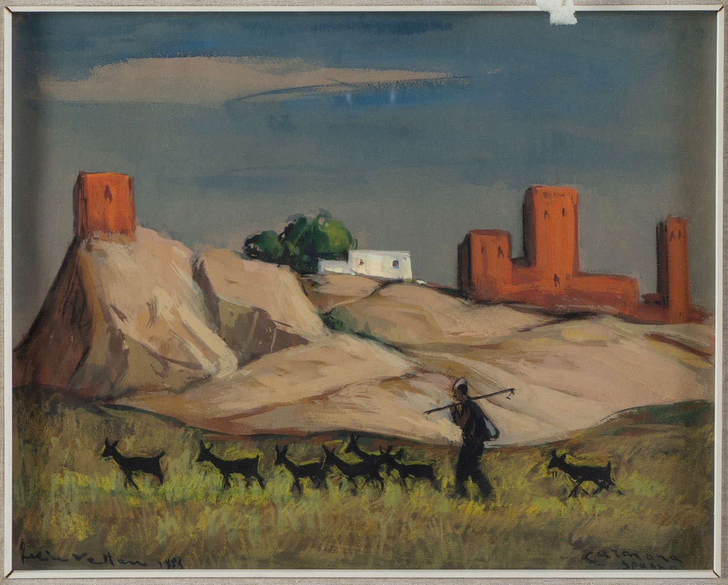Felice Vellan (Torino 1889 - 1976), “Caramona”. Tecnica mista su carta, firmato e datato in basso a sinistra, reca in basso a destra iscrizione “Caramona/Spagna”, H cm 40x50