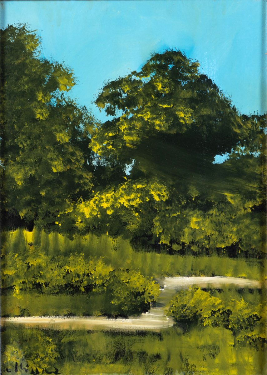 Miscar (Albino 1930), “Paesaggio”. Olio su tela, firmato in basso a sinistra, reca al retro etichetta Il Quadrato - Pittori e Pittura Contemporanea 1975, H cm 70x50