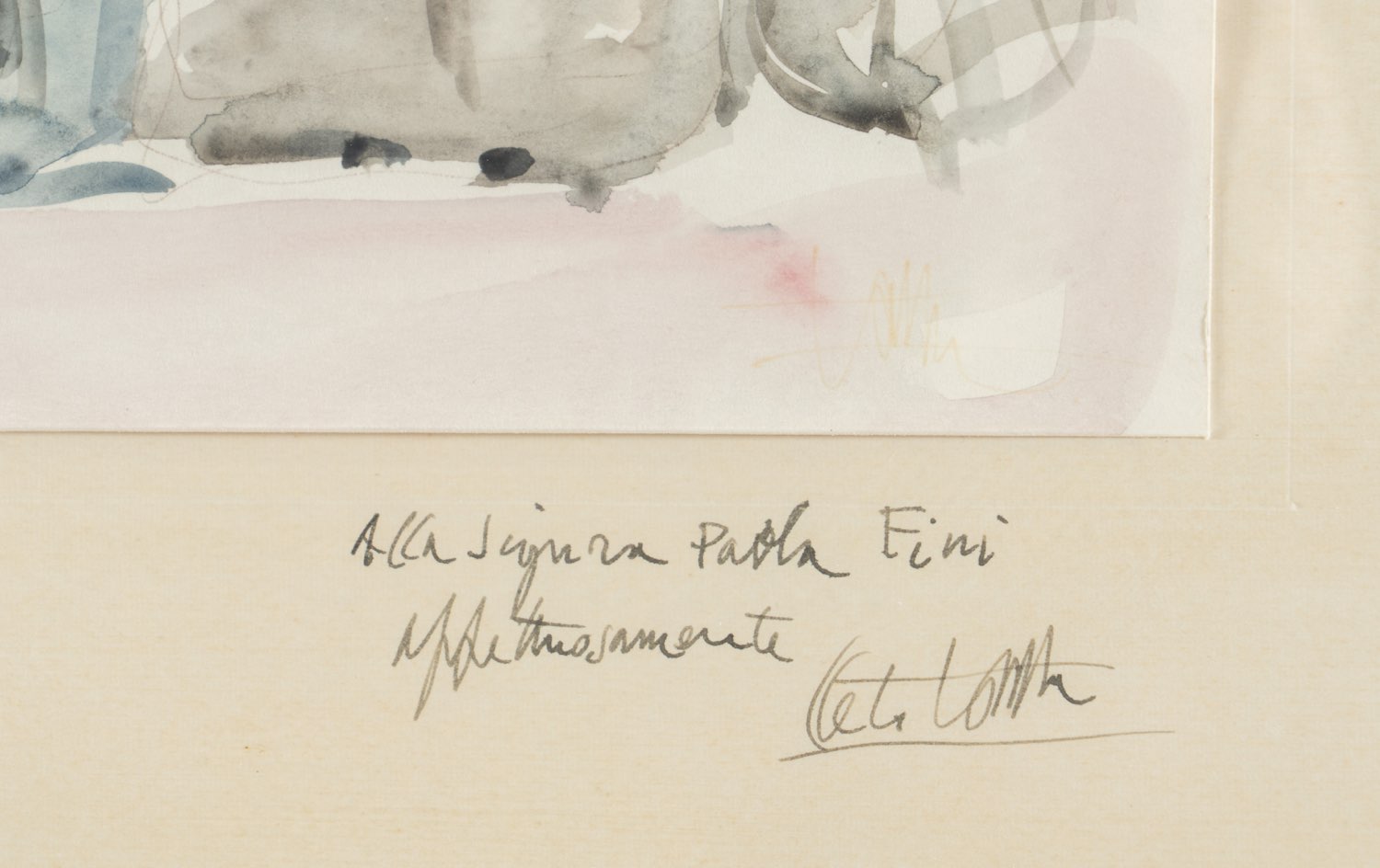 Cleto Tomba (Castel San Pietro Terme 1898 - Bologna 1987), “Suore”. Acquerello su carta, firmato in basso a destra, reca in basso dedica a firma dell’artista, H cm 18x29