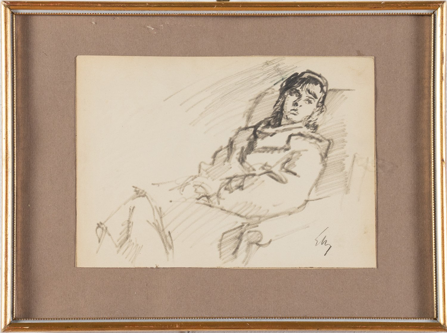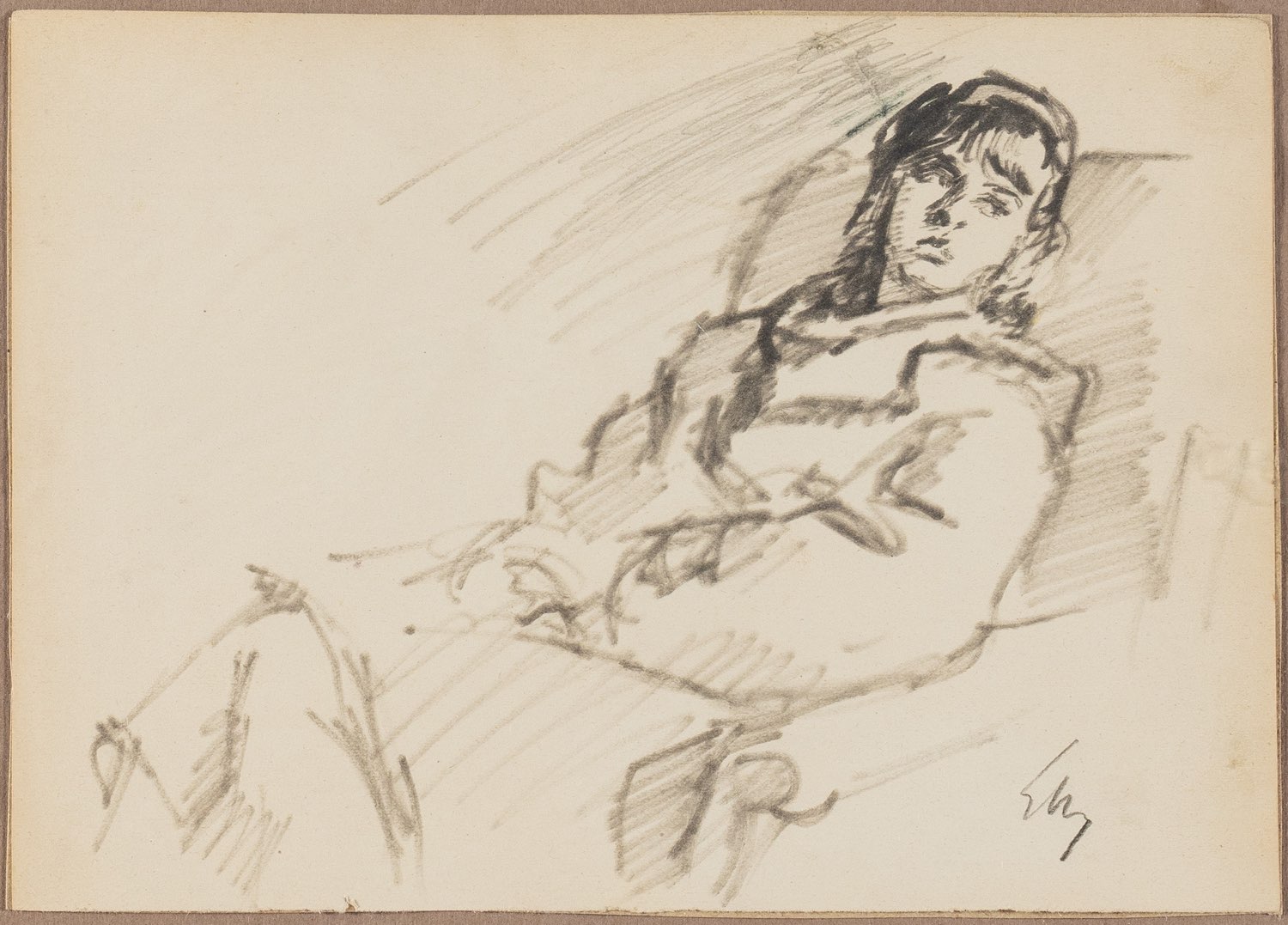Gino Marzocchi (Molinella 1895 - Bologna 1891), “Figura femminile”. Carboncino su carta, siglato in basso a destra, H cm 16x23