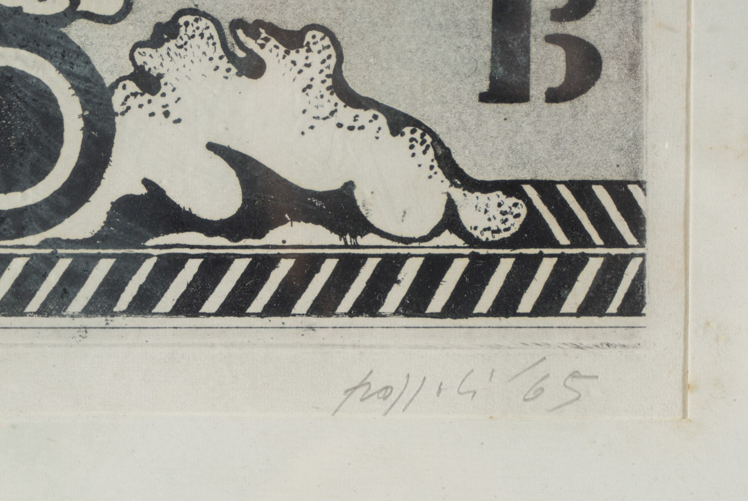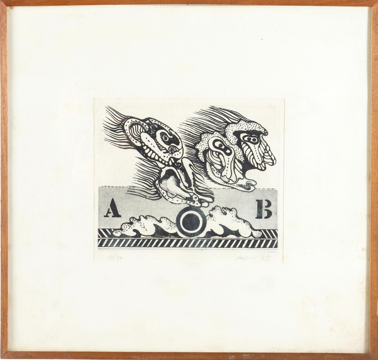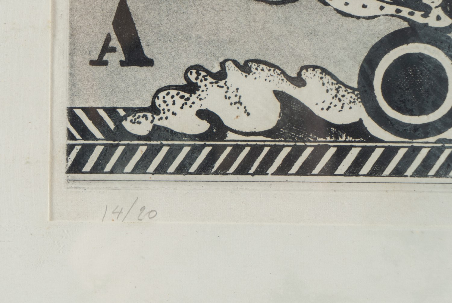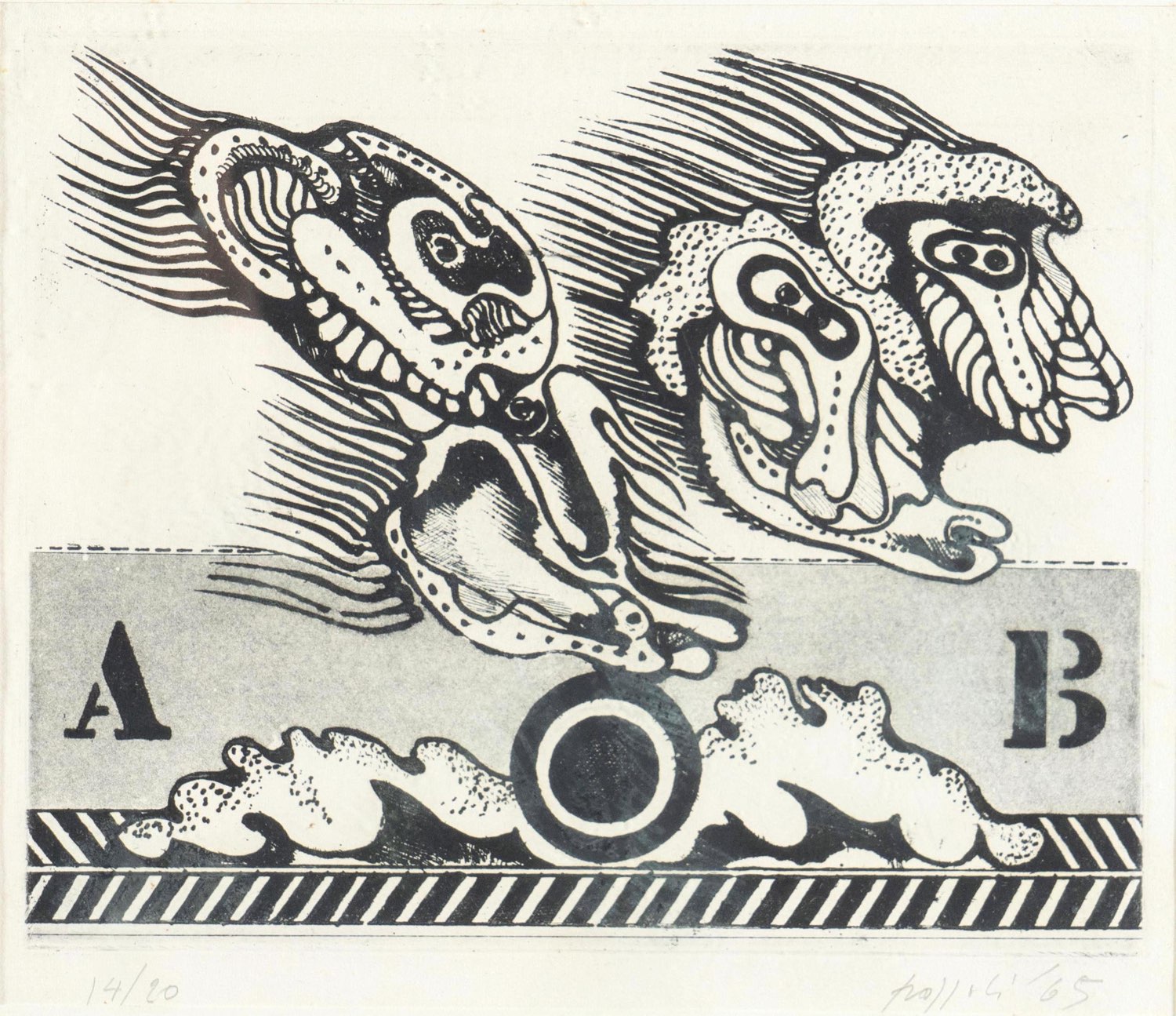Concetto Pozzati (Vo' 1935 - Bologna 2017), “Senza titolo”, 1965. Litografia su carta, firmata e datata in basso a destra “Pozzati ‘65”, numero di tiratura in basso a sinistra 14/20, Lastra H cm 20x24.5