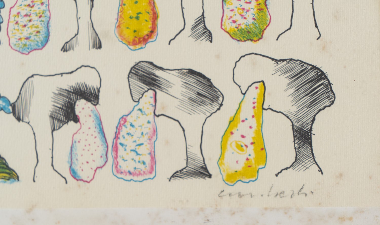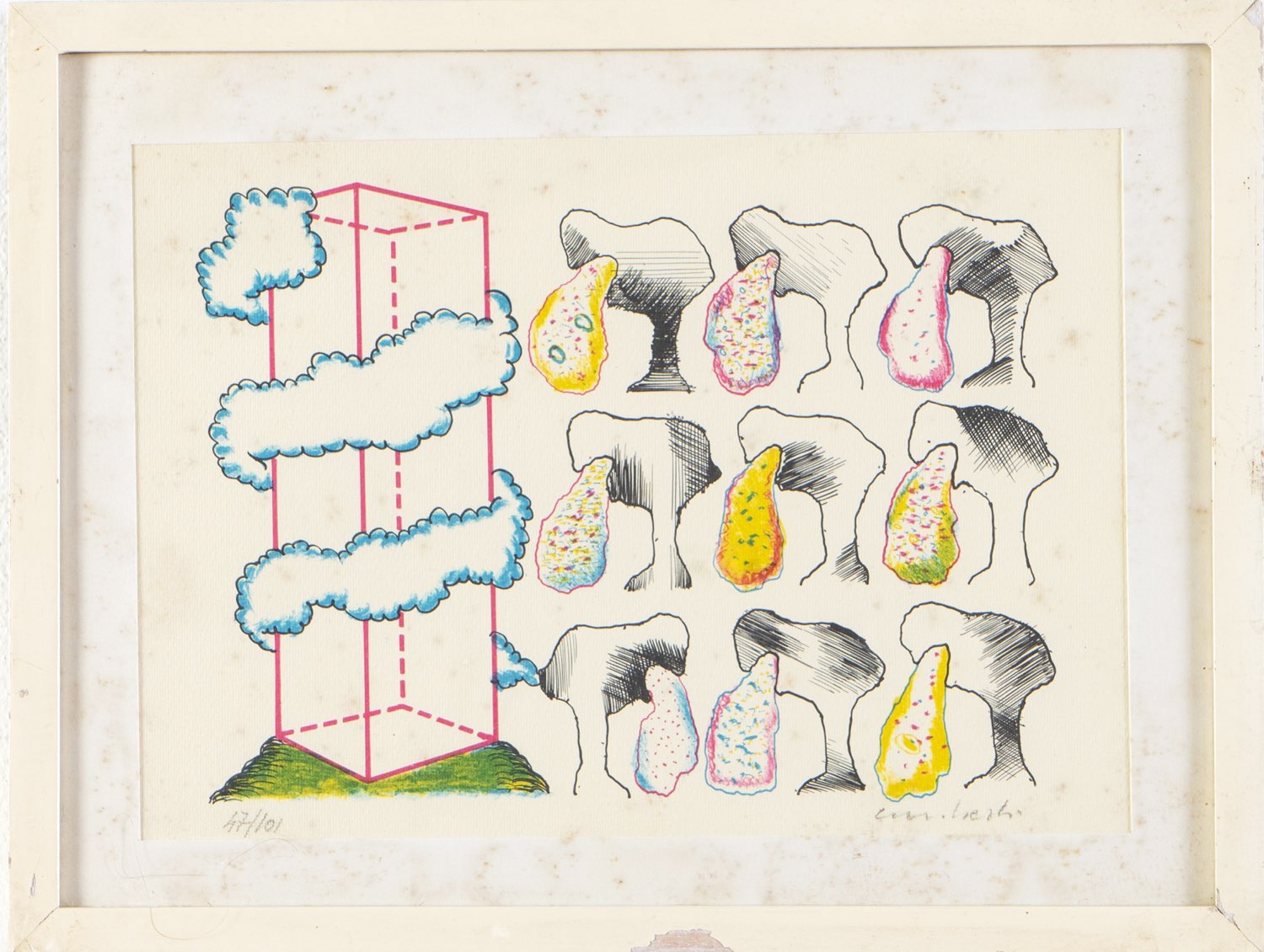 Pirro Cuniberti (Sala Bolognese 1923 - Bologna 2016), “Senza titolo”. Litografia a colori su carta, firmata in basso a destra, numero di tiratura in basso a sinistra 47/101, Foglio H cm 26x34