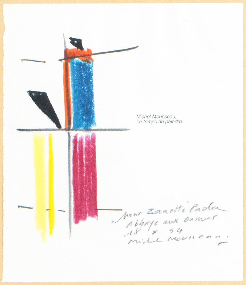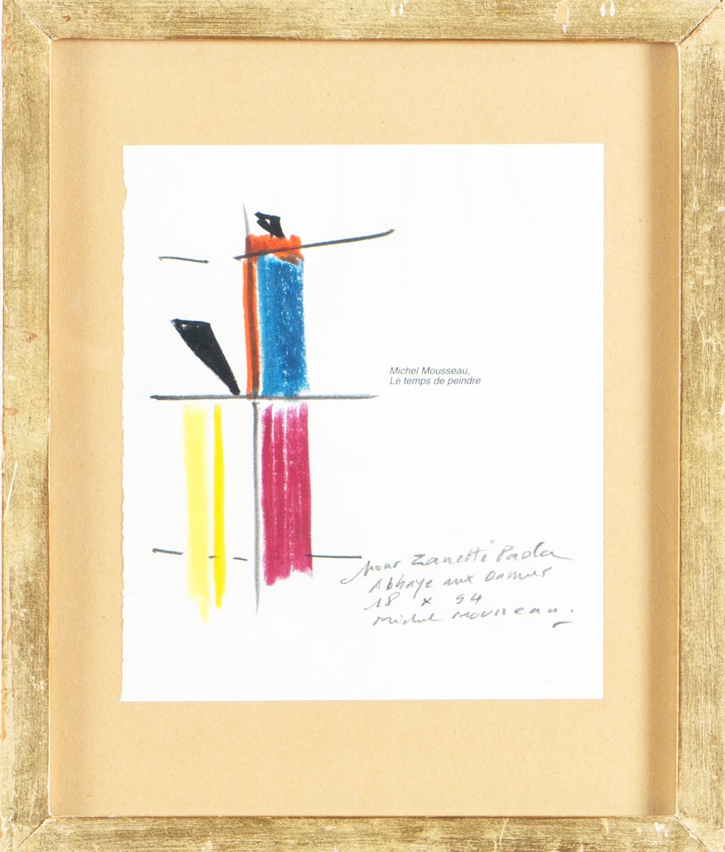 Michel Mousseau (Coutures 1934), “Le temps du peindre”. Tecnica mista su carta, reca dedica autografa in basso a destra, H cm 23x20