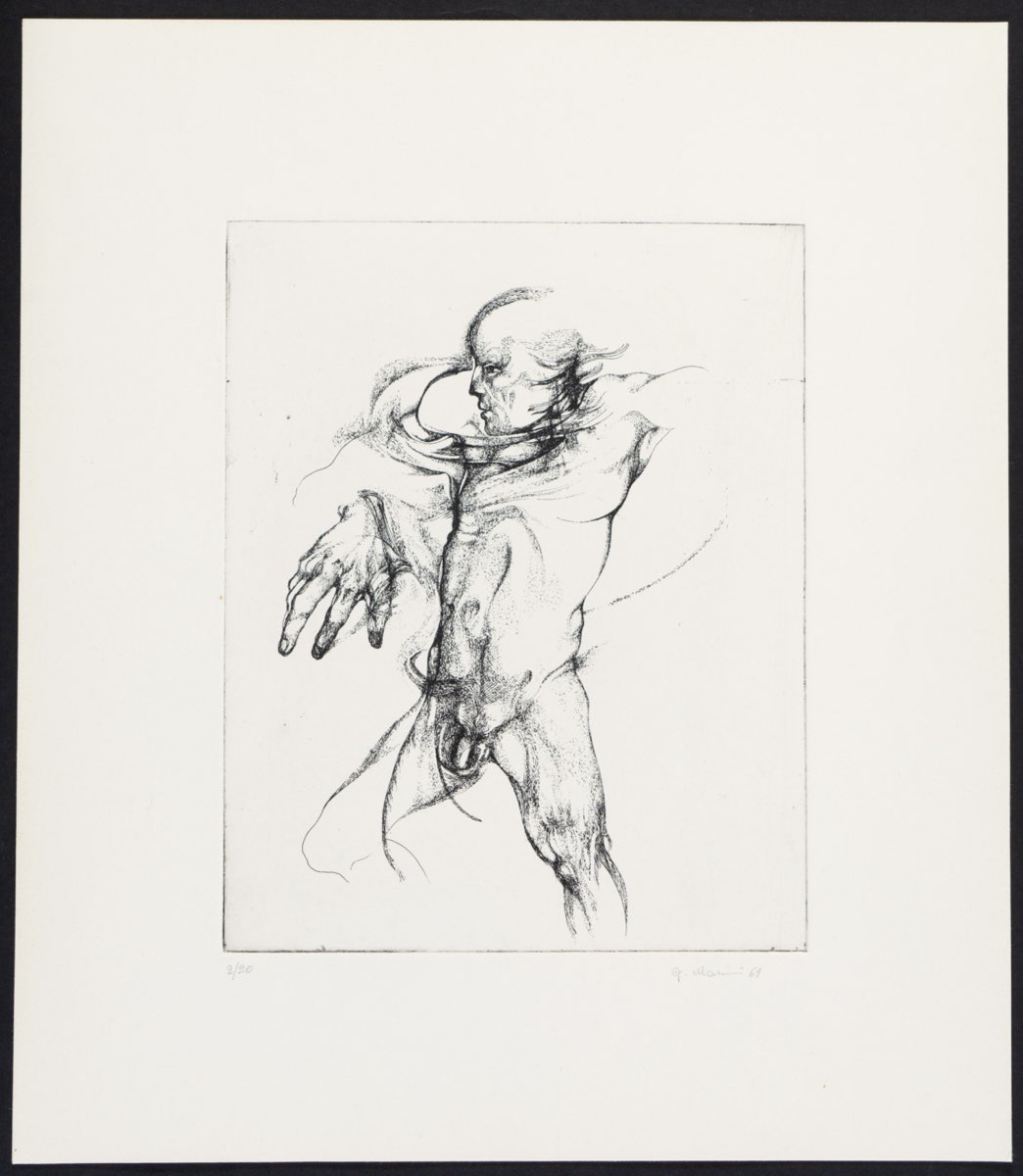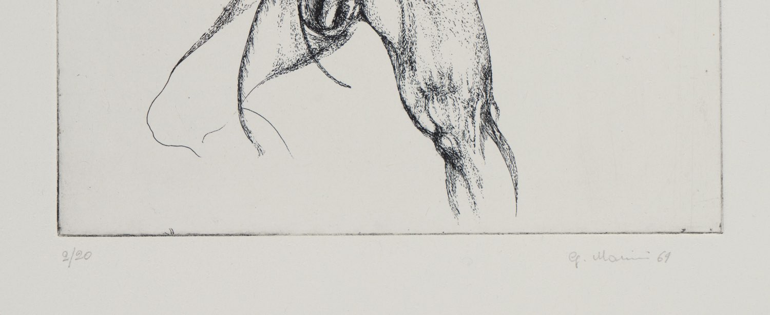 Giancarlo Marini (Sesto Fiorentino 1936), “Senza titolo”, 1969. Incisione su carta, firmata e datata in basso a destra “G. Marini 69”, numero di tiratura in basso a sinistra 2/20, Lastra H cm 25x20