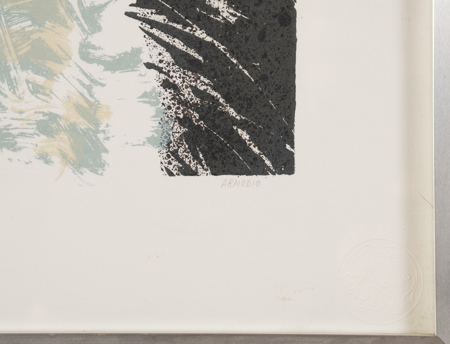 Vilmore Schenardi detto Armodio (Piacenza 1938), “Senza titolo”. Litografia a colori su carta, firmata in basso a destra, numero di tiratura in basso a sinistra 38/60, reca timbro a secco L'elefante rosso, Lastra H cm 55x35