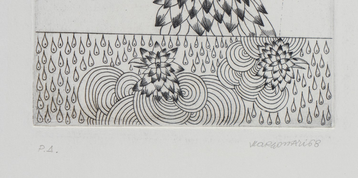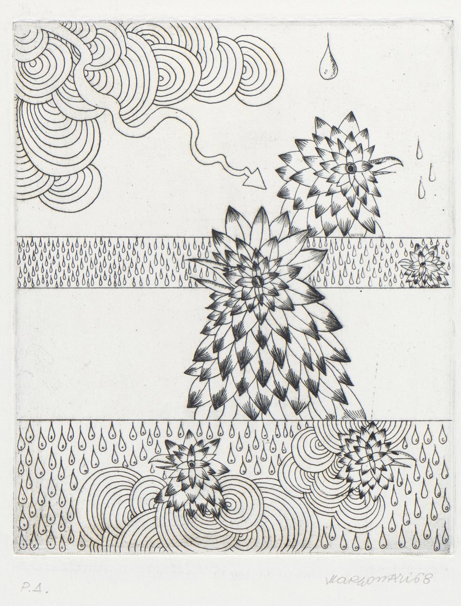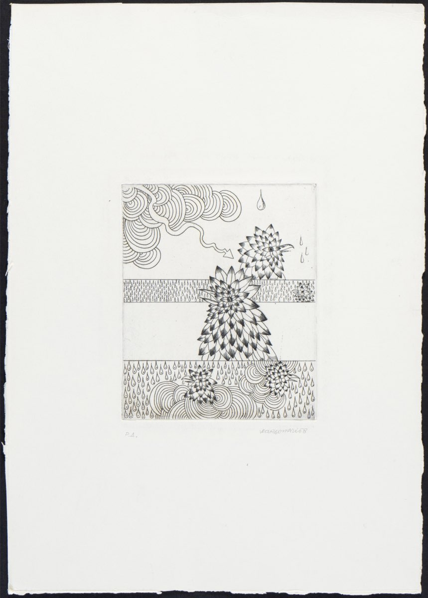 Renzo Margonari (Mantova 1937), “Senza titolo”, 1968. Incisione su carta, firmata e datata in basso a destra “Margonari 68”, esemplare in basso a sinistra “P.A.”, Lastra H cm 20x16.5