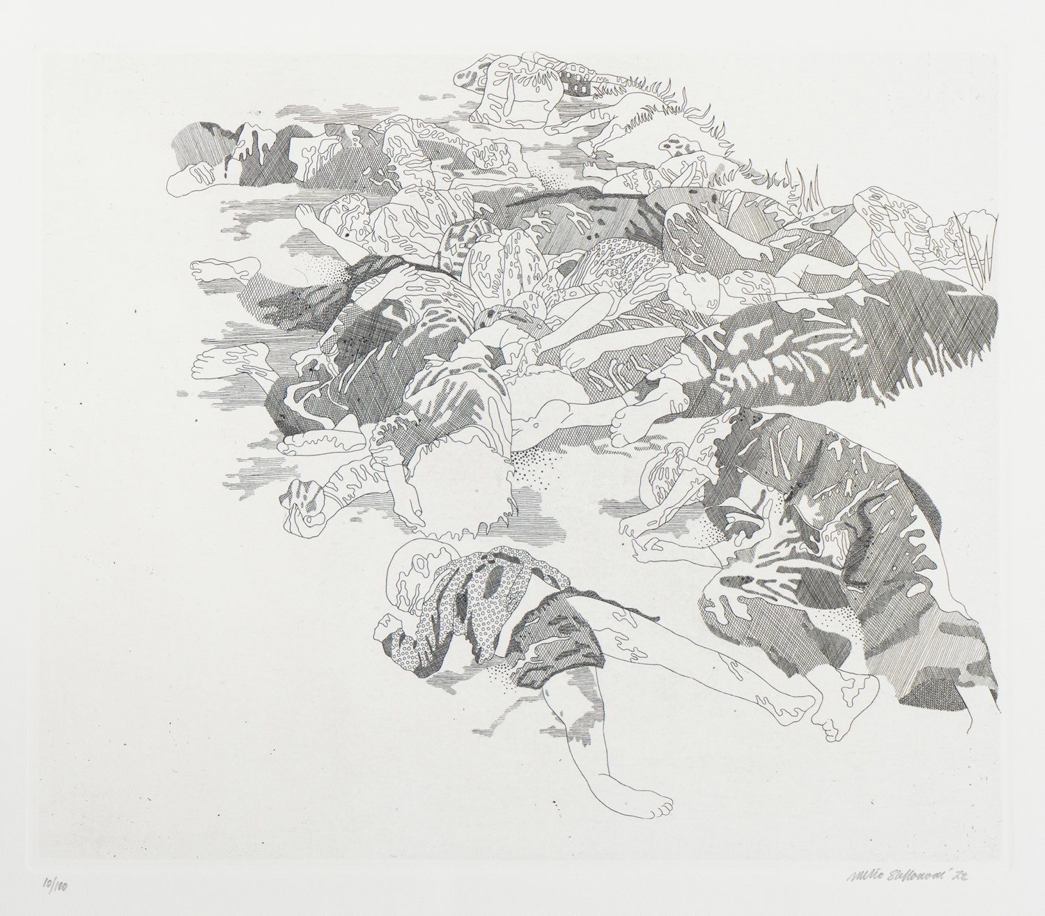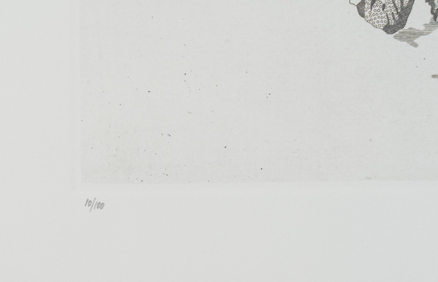 Attilio Steffanoni (Bergamo 1938), “Senza titolo”, 1972. Acquaforte su carta, firmata e datata in basso a destra, numero di tiratura in basso a sinistra 10/100, Lastra H cm 26.5x31.5