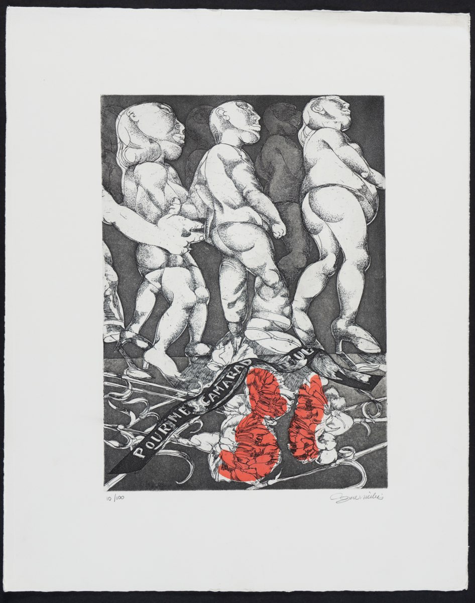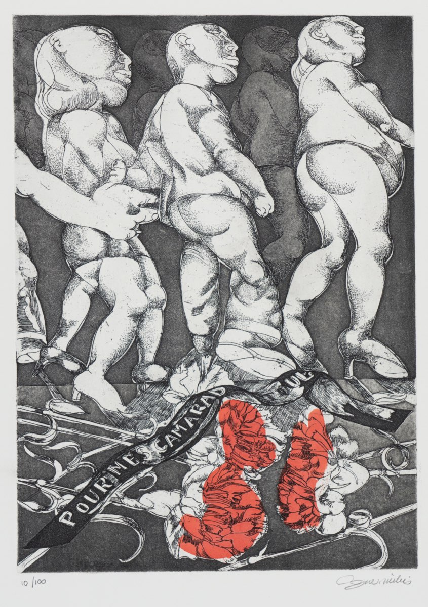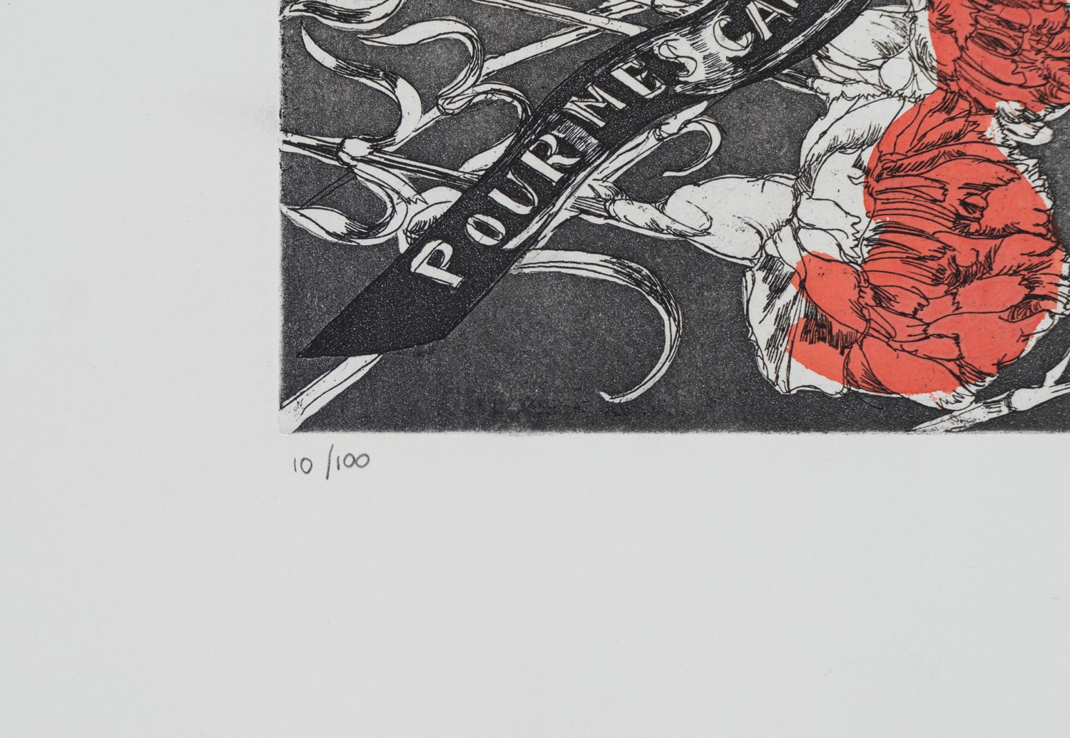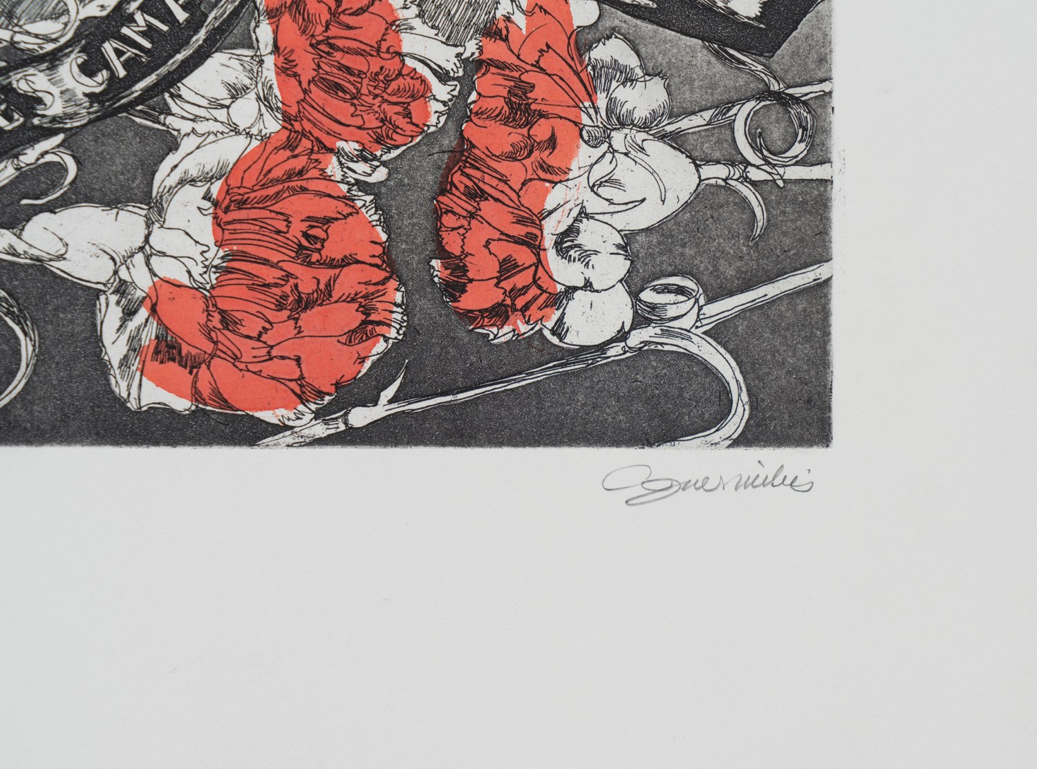 Luigi Guerricchio (Matera 1932 - 1996), “Senza titolo”. Acquaforte a colori su carta, firmata in basso a destra, numero di tiratura in basso a sinistra 10/100, Lastra H cm 34x24.5