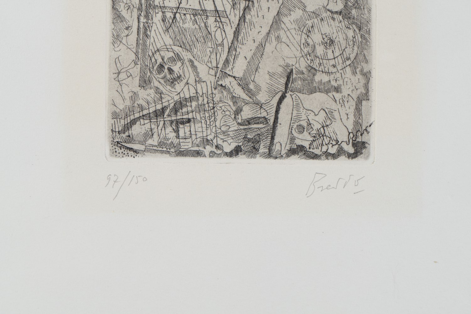 Gastone Breddo (Padova 1915 - Calenzano 1991), “Uomo del mio tempo”, 1963. Acquaforte su carta, firmata in basso a destra, numero di tiratura in basso a sinistra 97/150, reca timbro a secco, Lastra H cm 24.5x14