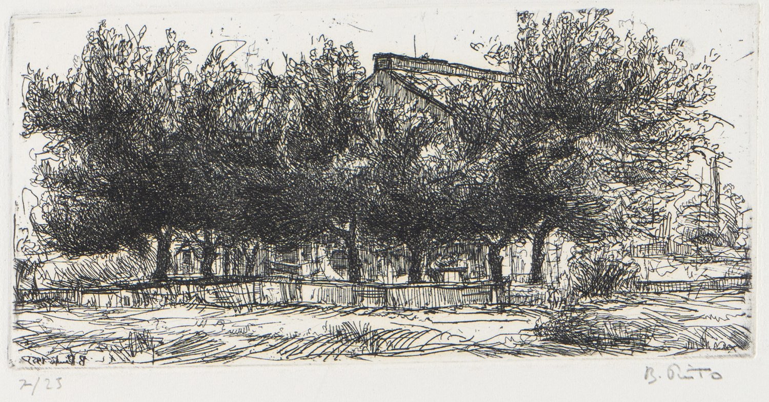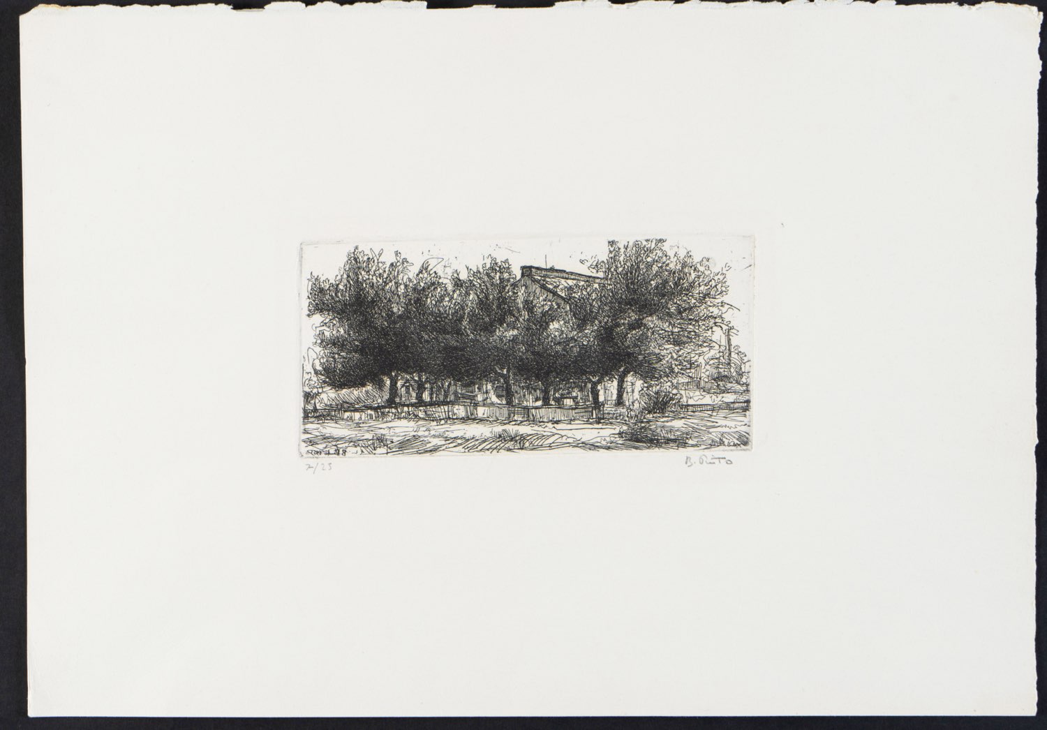 Bruno Pinto (Roma 1935), “Senza titolo”. Incisione su carta, firmata in basso a destra “B. Pinto”, numero di tiratura in basso a sinistra 7/25, Lastra H cm 10x22