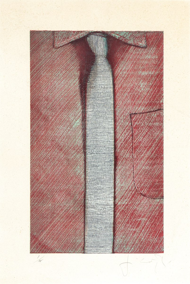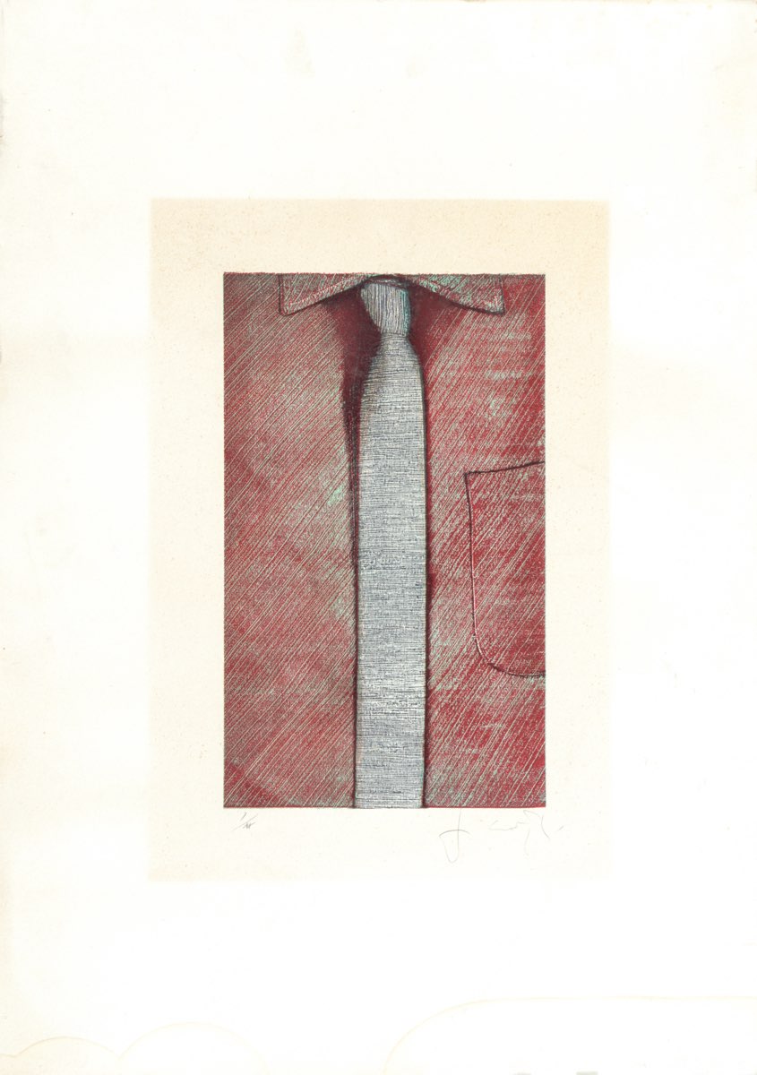 Artista del XX secolo, “Cravatta”. Litografia a colori su carta, firmata in basso a destra, numero di tiratura in basso a sinistra I/XX, Lastra H cm 34.5x20.5