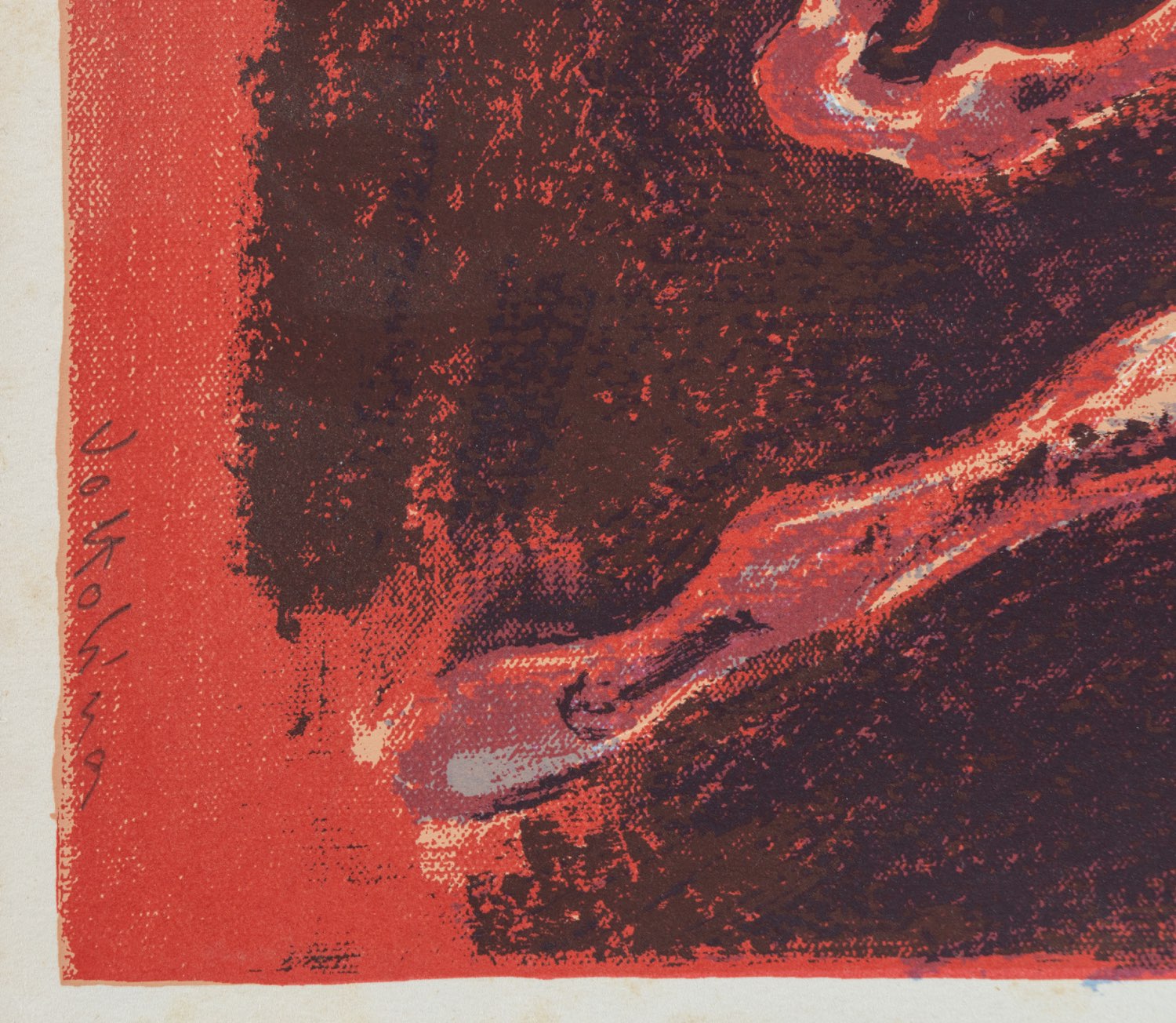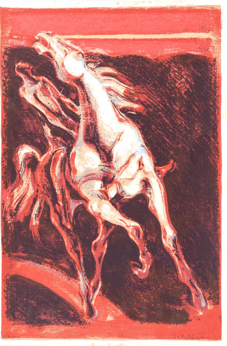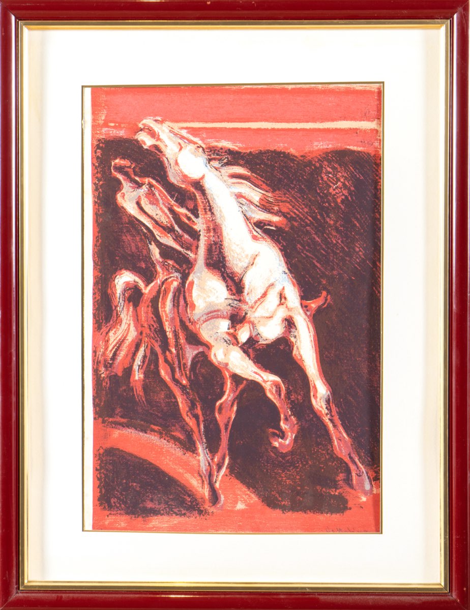 Luigi Voltolina (Valona 1942), “Uomo a cavallo”. Litografia su carta, firmata in basso a destra “Voltolina”, esemplare in basso a sinistra P.d.A., Lastra H cm 48x32