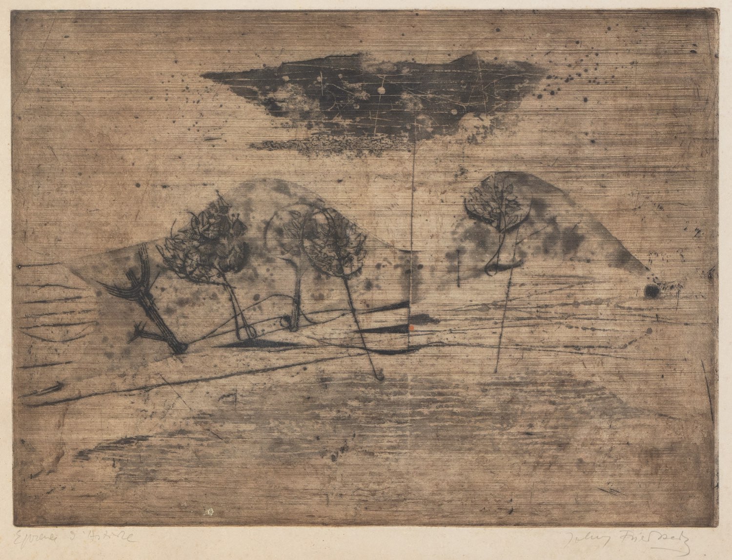 Johnny Friedlaender (Pszczyna 1912 - Parigi 1992), “Senza titolo”. Acquaforte su carta, firmata in basso a destra “Johnny Friedlaender”, reca in basso a sinistra iscrizione con esemplare “Epreuve d’Artiste”, Lastra H cm 33x45.5