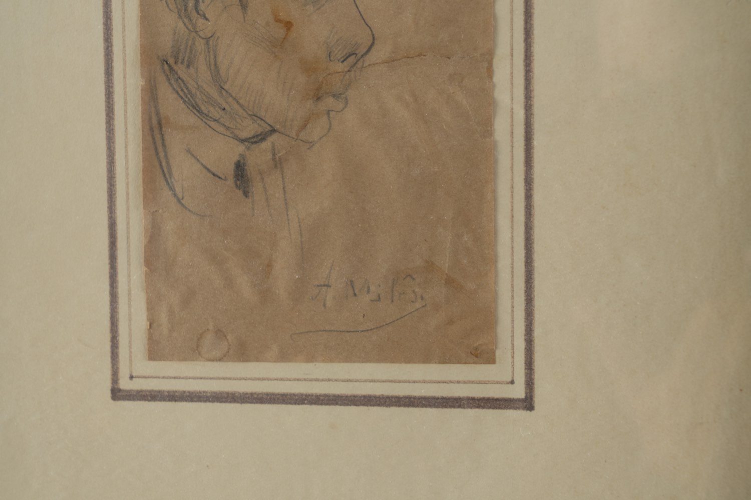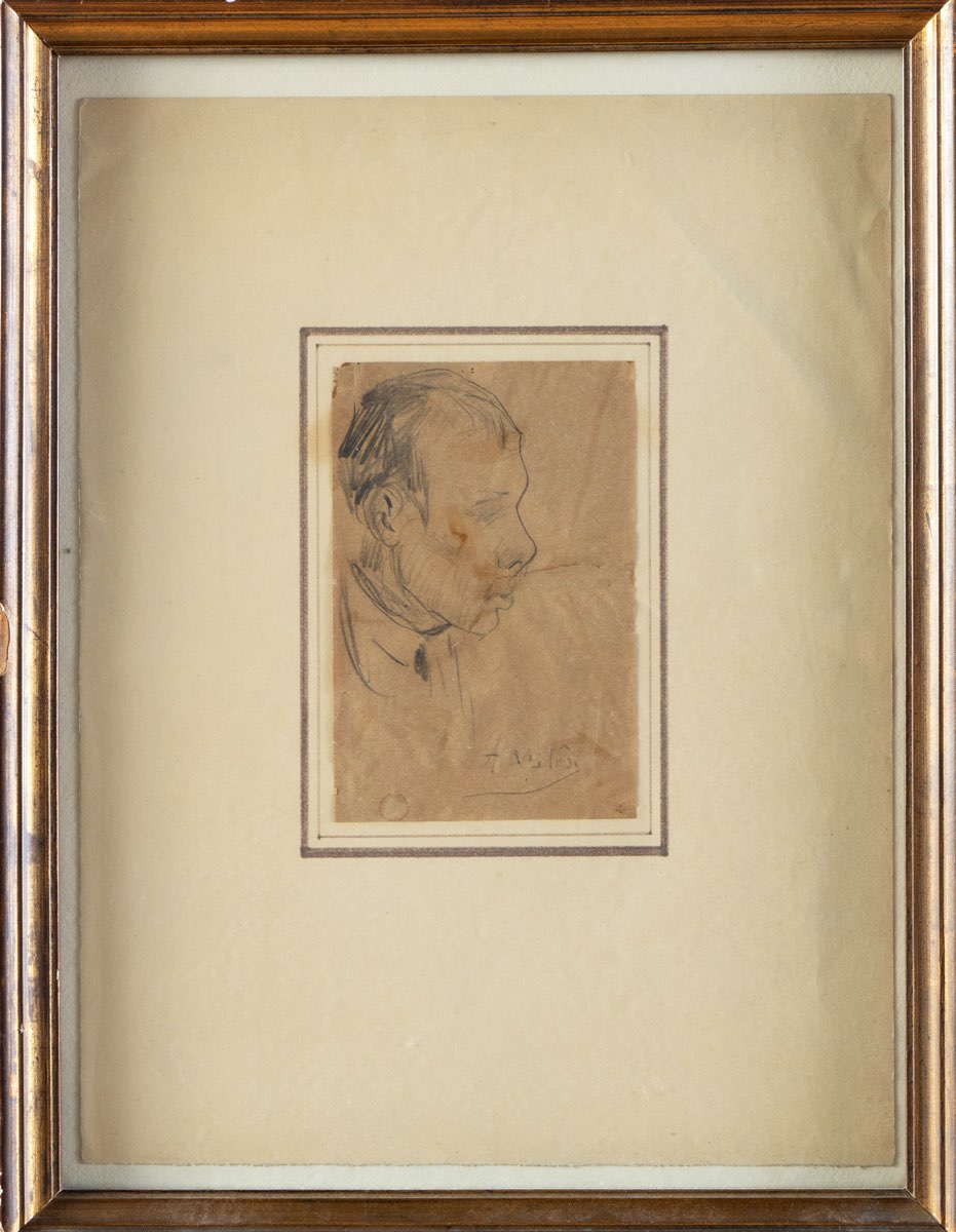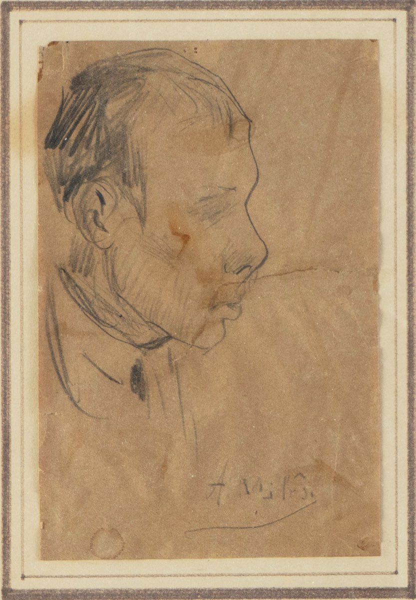 Alessandro Milesi (Venezia 1856 - 1945), “Volto maschile”. Matita su carta, firmato in basso a destra “A. Milesi”, H cm 16x10 (lievi difetti)