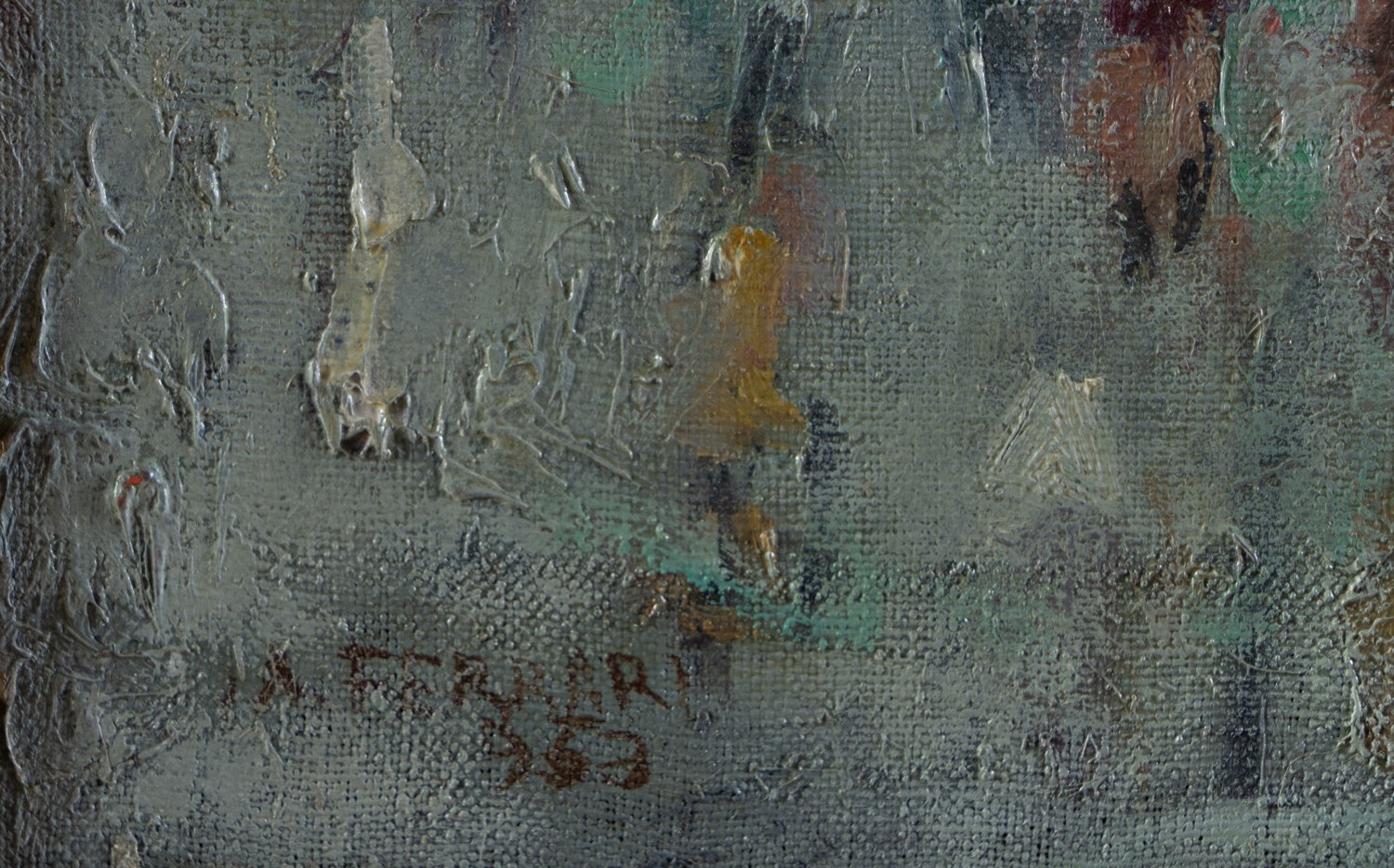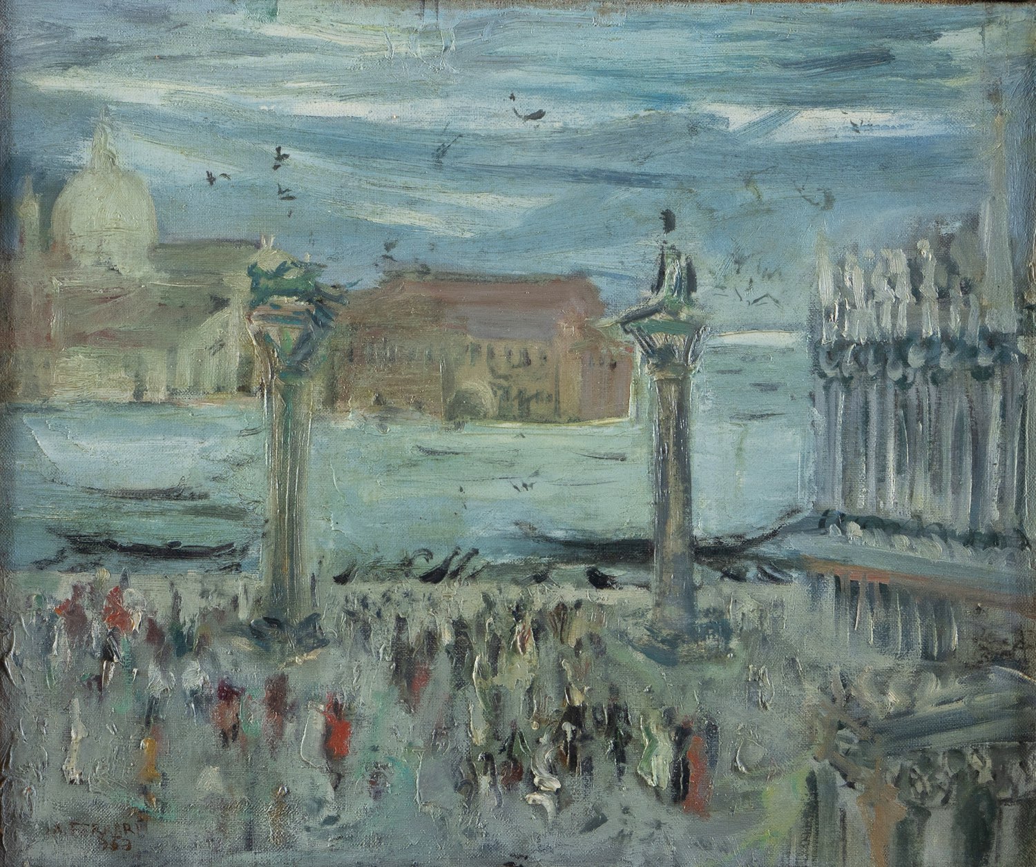 Angelo Ferrari (San Martino in Rio 1914 - 1993), “Veduta Veneziana”, 1963. Olio su tela, firmato e datato in basso a sinistra, H cm 50x60
