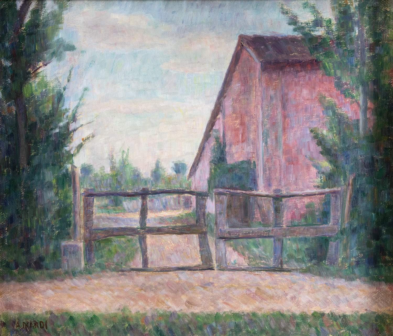 Antonio Nardi (Cerea 1888 - Verona 1965), “Paesaggio con casolare”. Olio su tela, firmato in basso a sinistra, H cm 56x65